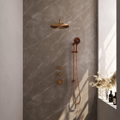 De Brauer Copper Carving Regendoucheset inbouw is een prachtige toevoeging aan elke badkamer. Met zijn elegante ontwerp en hoogwaardige afwerking brengt deze doucheset een vleugje luxe in jouw dagelijkse doucheroutine. Het koperen materiaal en de Carving knoppen geven een stijlvolle uitstraling, terwijl de functionaliteit en veelzijdigheid ervoor zorgen dat je kunt genieten van een ontspannende douche-ervaring.