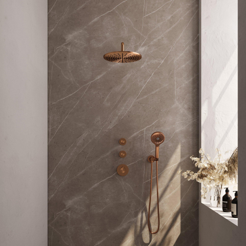 De Brauer Copper Carving Regendoucheset inbouw is ontworpen met oog voor stijl. De koperen materialen en de geborstelde afwerking geven een luxe uitstraling aan je badkamer. De Carving knoppen voegen een uniek element toe aan het ontwerp, terwijl de handdouche met één stand zorgt voor extra gemak. Deze doucheset is niet alleen functioneel, maar ook een prachtige toevoeging aan je interieur.