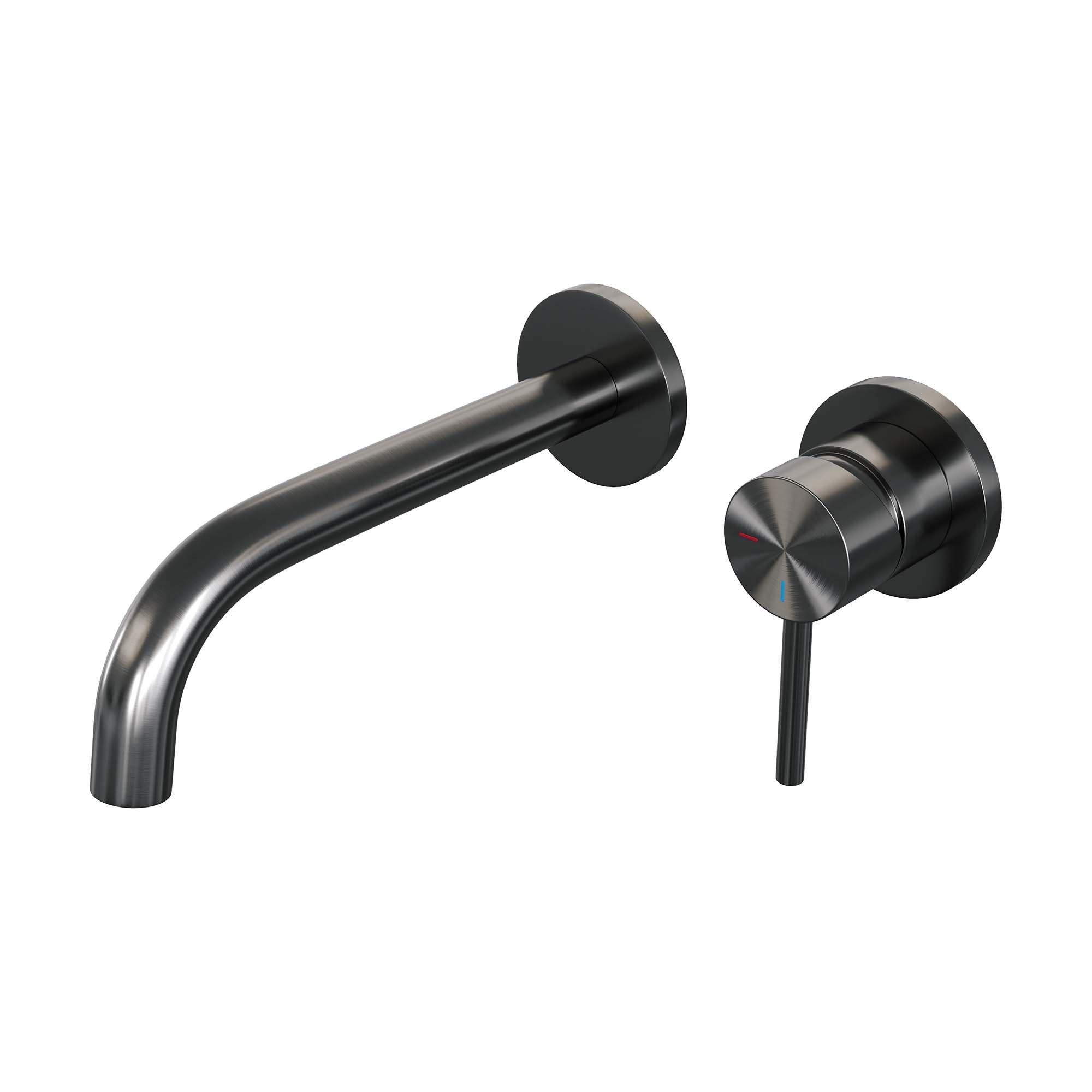 Brauer Gunmetal Edition Wastafelmengkraan inbouw - gebogen uitloop links - hendel lang smal - model A 1 - PVD - geborsteld gunmetal