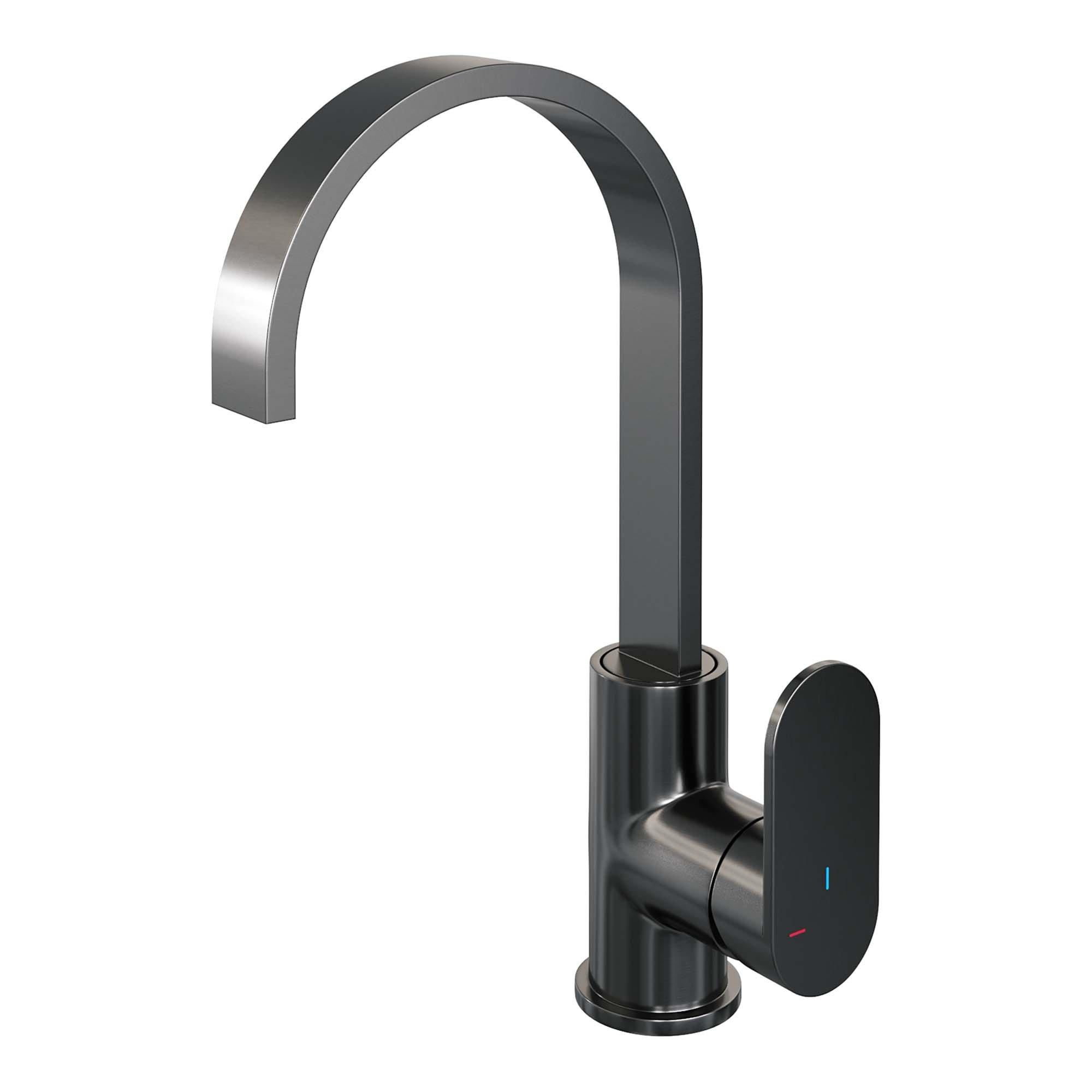 Brauer Gunmetal Edition Wastafelmengkraan opbouw - hoog - draaibaar - platte uitloop - model C - PVD - geborsteld gunmetal