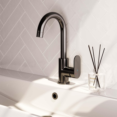 De Brauer Gunmetal Edition Wastafelmengkraan opbouw straalt een onmiskenbare stijl uit die elke badkamer transformeert tot een luxe oase. De geborsteld gunmetal afwerking geeft een moderne en elegante uitstraling, terwijl de hoogte van de kraan zorgt voor een verfijnde en opvallende aanwezigheid. Met zijn draaibare ronde uitloop voegt deze kraan niet alleen functionaliteit toe, maar ook een vleugje verfijning aan de ruimte.