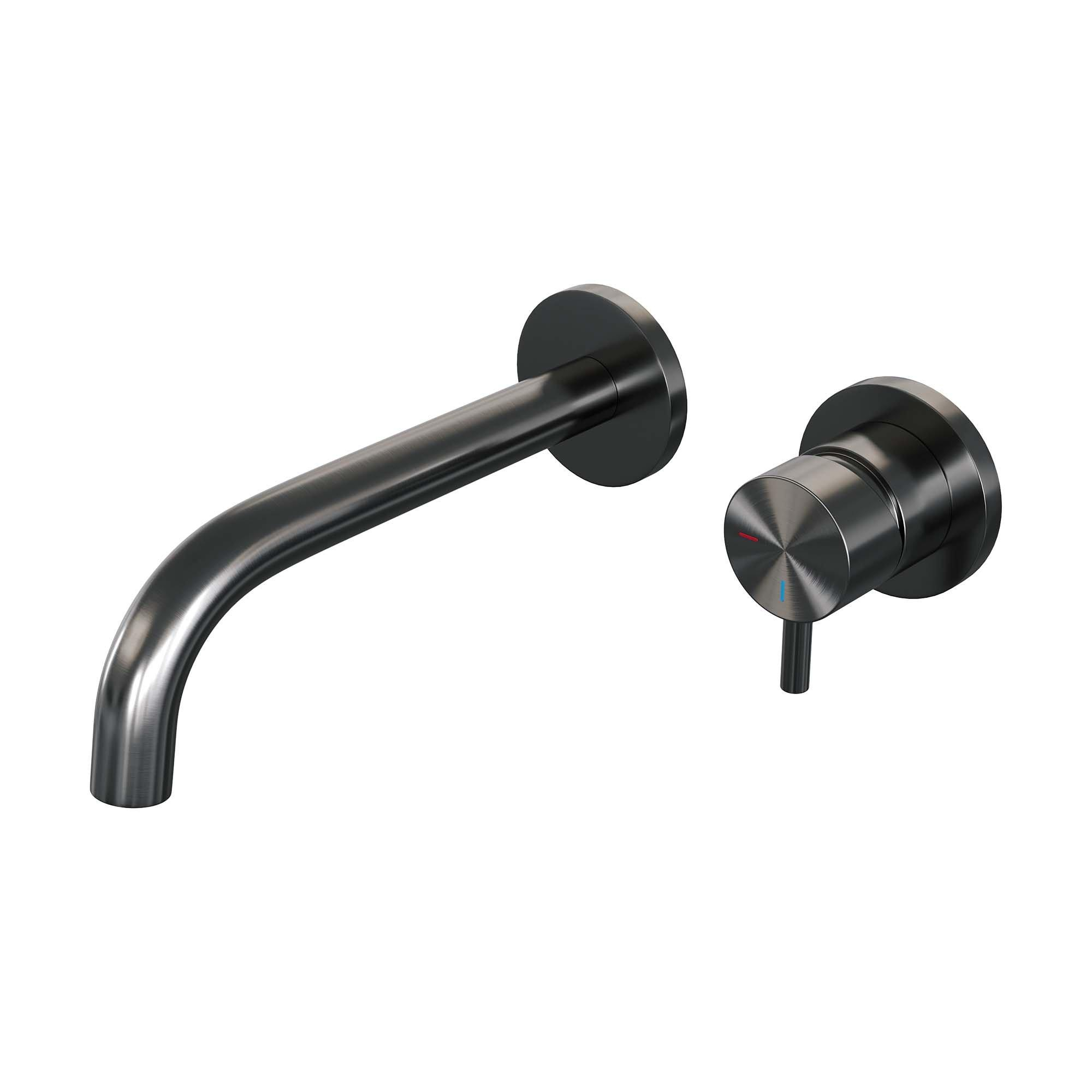 Brauer Gunmetal Edition Wastafelmengkraan inbouw - gebogen uitloop links - hendel kort smal - model B 1 - PVD - geborsteld gunmetal