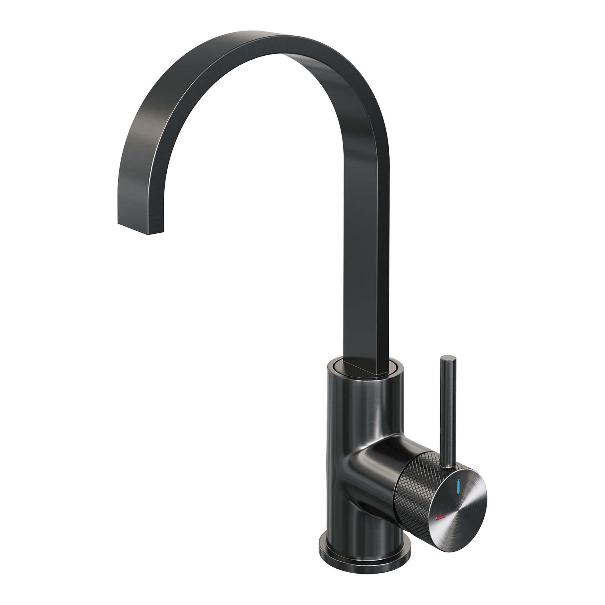 Brauer Gunmetal carving Wastafelmengkraan opbouw - hoog - draaibaar - platte uitloop - model a - PVD - geborsteld gunmetal
