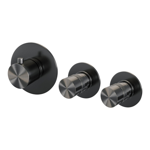 Brauer Gunmetal Edition Badkraan Inbouw - douchegarnituur - 20cm uitloop - inbouwdeel - 3 gladde knoppen - handdouche rond 3 standen - PVD - geborsteld gunmetal