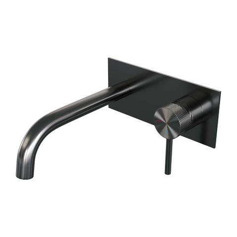 Brauer Gunmetal Carving Wastafelmengkraan inbouw - gebogen uitloop links - hendel lang smal carving- afdekplaat - model A 1 - PVD - geborsteld gunmetal