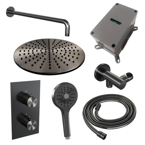 Brauer Gunmetal Edition Regendoucheset inbouw - hoofddouche 30cm - Gladde knop - handdouche rond 3 standen - PVD - geborsteld gunmetal