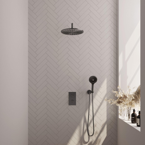 De Brauer Gunmetal Edition Regendoucheset inbouw valt op door zijn stijlvolle design en gunmetal afwerking. De gladde knoppen en strakke lijnen geven een moderne uitstraling aan je badkamer. Deze doucheset voegt een vleugje elegantie toe aan elke doucheruimte, waardoor het een echte blikvanger wordt.