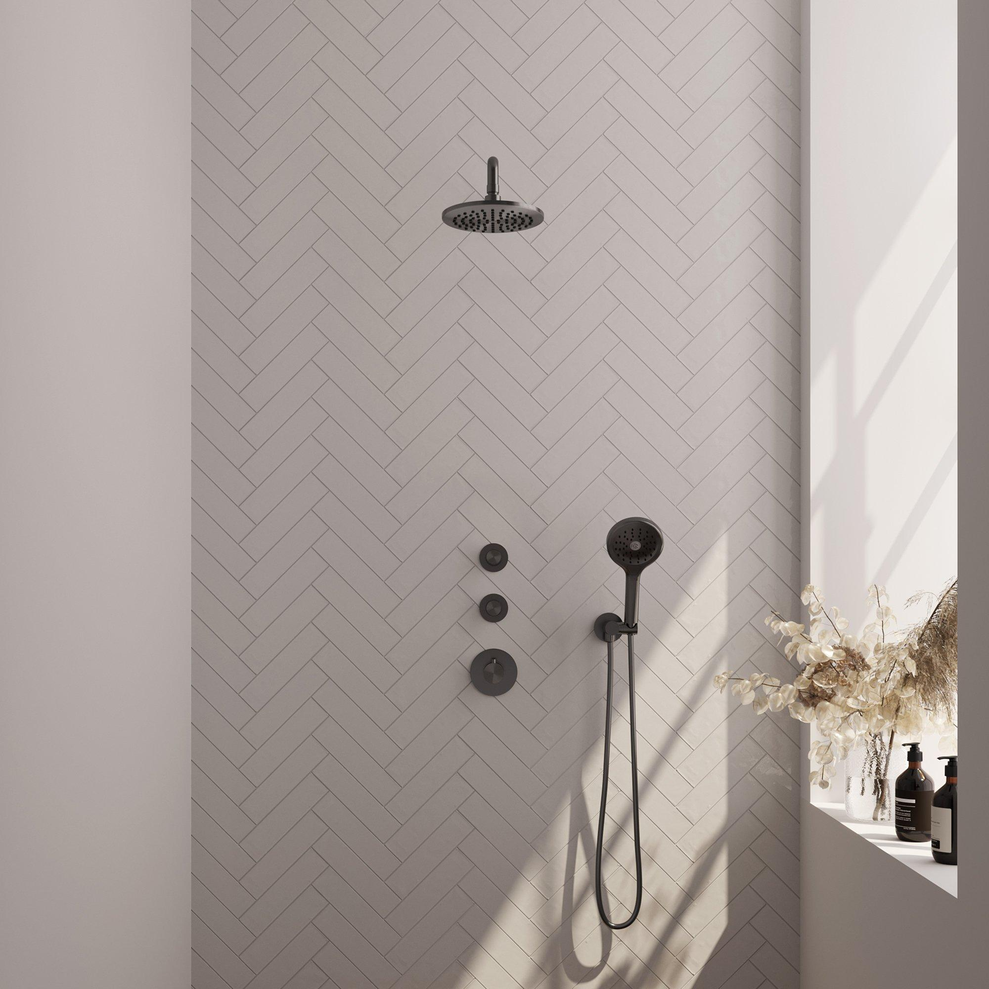 De Brauer Gunmetal Edition Regendoucheset inbouw is een prachtige toevoeging aan elke badkamer. Met zijn elegante ontwerp en hoogwaardige gunmetal afwerking straalt deze doucheset luxe en stijl uit. De set bestaat uit een inbouw hoofddouche van 20 cm, een wandarm, gladde knoppen en een handdouche met één stand. Het PVD-geborsteld gunmetal geeft de set een moderne uitstraling die perfect past bij een eigentijdse badkamer. Geniet van een ontspannende douche-ervaring met deze verfijnde regendoucheset.