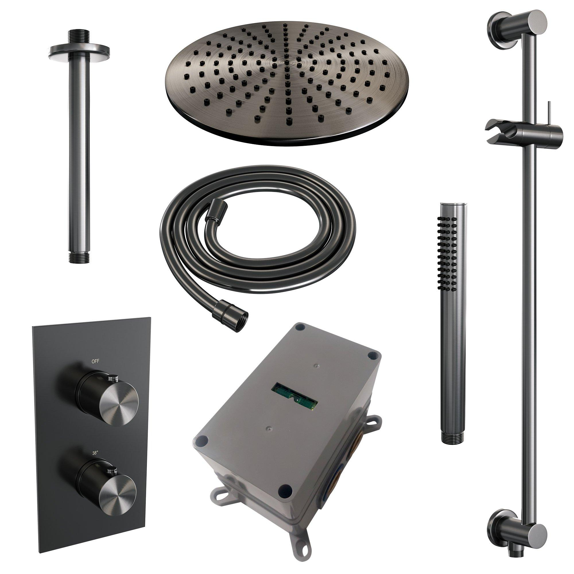 Brauer Gunmetal Edition Regendoucheset inbouw - hoofddouche 30 cm - 2 functies - glijstang - inclusief inbouwdeel - handdouche Staaf 1 stand - PVD - geborsteld gunmetal