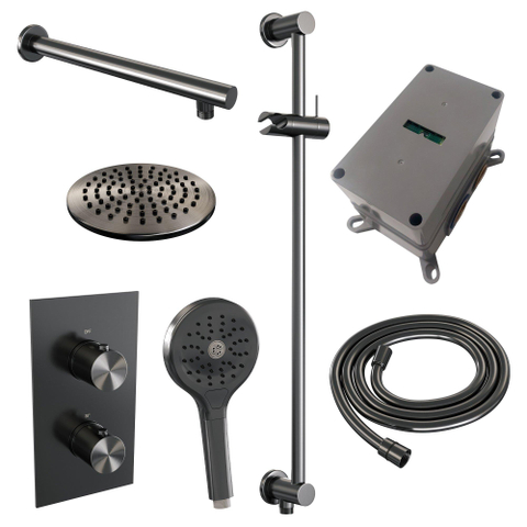 Brauer Gunmetal Edition Regendoucheset inbouw - hoofddouche 20cm - gladde knop - handdouche Rond 3 standen - glijstang - PVD - geborsteld gunmetal