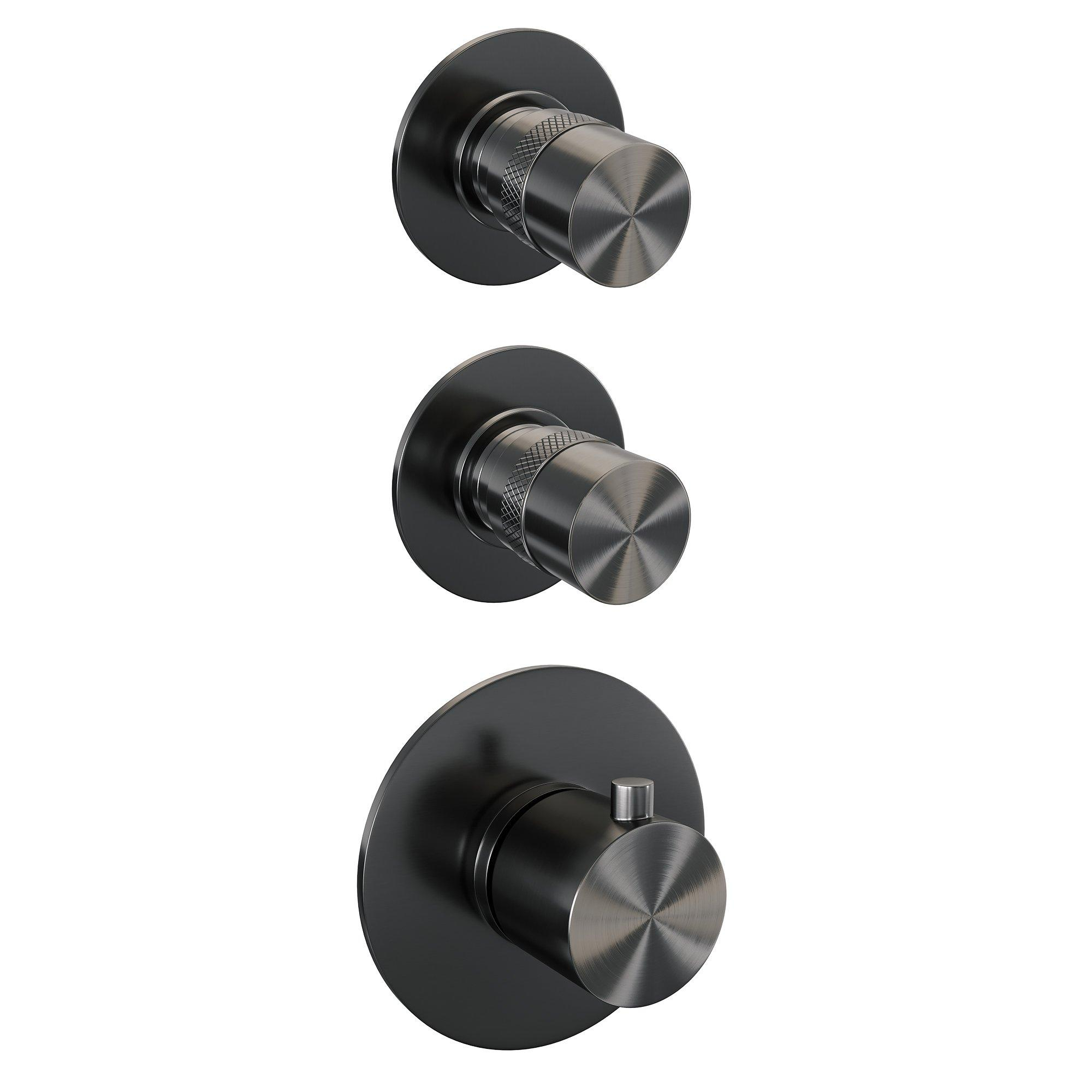 Brauer Gunmetal Edition Regendoucheset inbouw - hoofddouche 30cm - Wandarm - glijstang - met inbouwdeel - Gladde knoppen - handdouche Rond 3 standen - PVD - geborsteld gunmetal