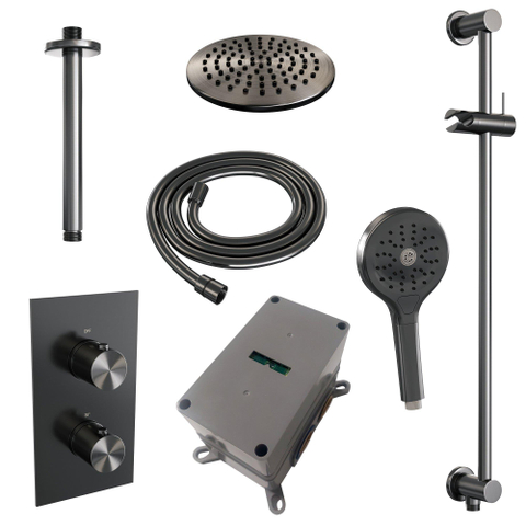 Brauer Gunmetal Edition Regendoucheset inbouw - hoofddouche 20cm - plafondarm 20cm - 2 functies - glijstang - inclusief inbouwdeel - handdouche Rond 3 standen - PVD - geborsteld gunmetal