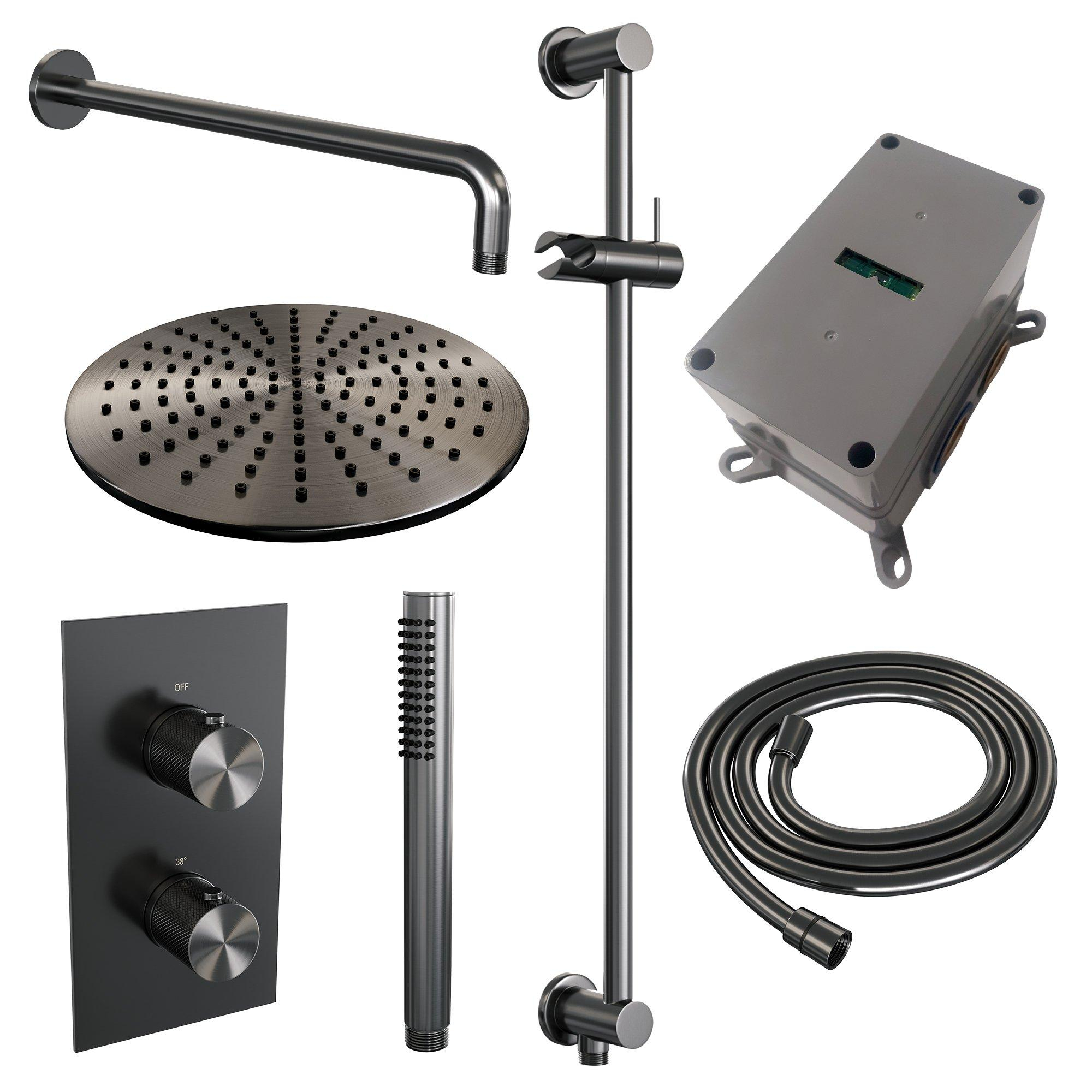 Brauer Gunmetal Carving Regendoucheset inbouw - hoofddouche 30cm - Carving knop - handdouche staaf 1 stand - glijstang - PVD - geborsteld gunmetal SW715979