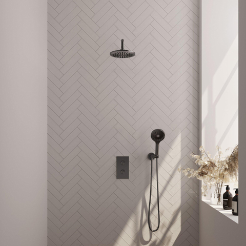 Brauer Gunmetal Carving Regendoucheset inbouw - hoofddouche 20cm - Carving knop - handdouche rond 3 standen - PVD - geborsteld gunmetal SW715995