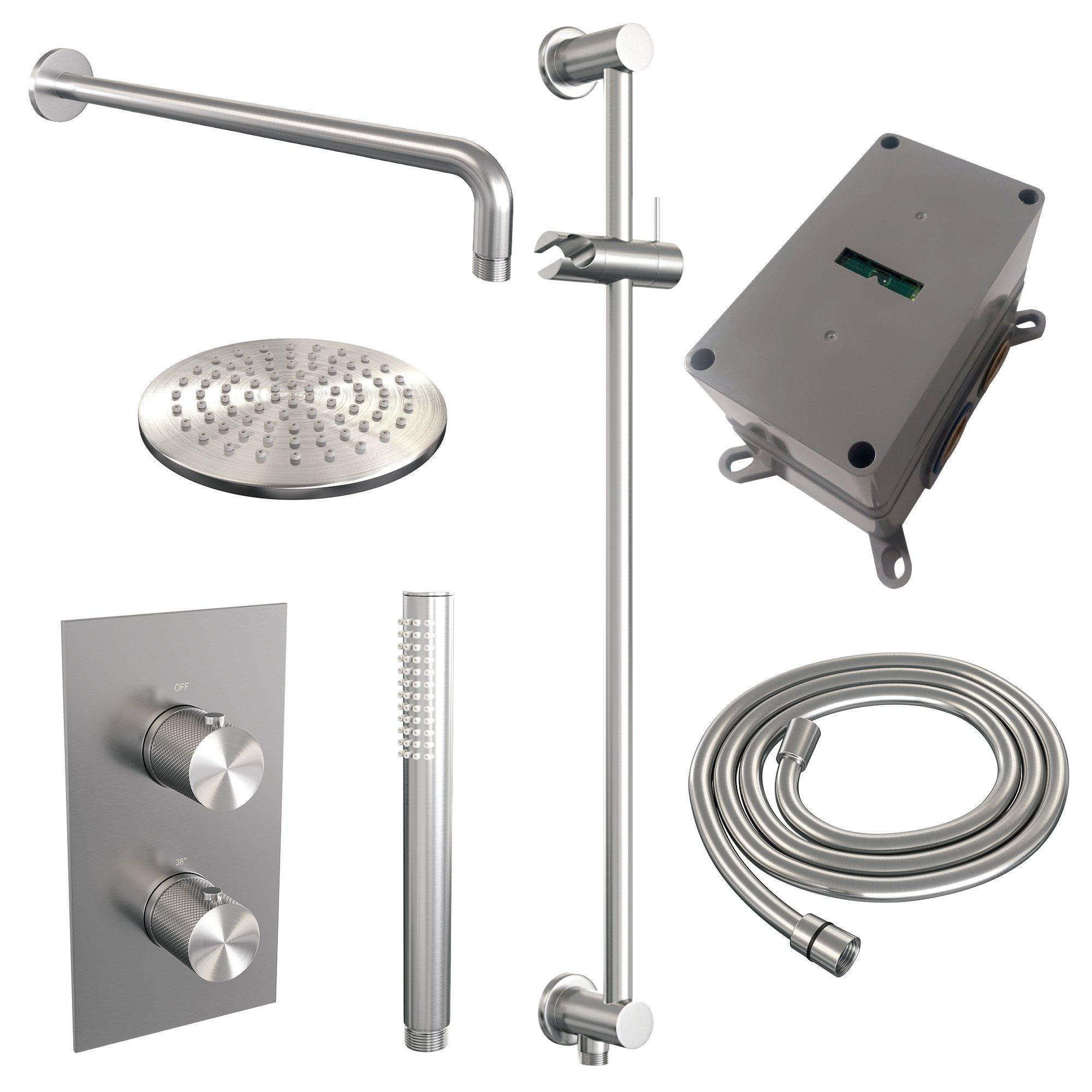Brauer Brushed Carving Regendoucheset inbouw - hoofddouche 20cm - Carving knop - handdouche staaf 1 stand - glijstang - PVD - geborsteld RVS