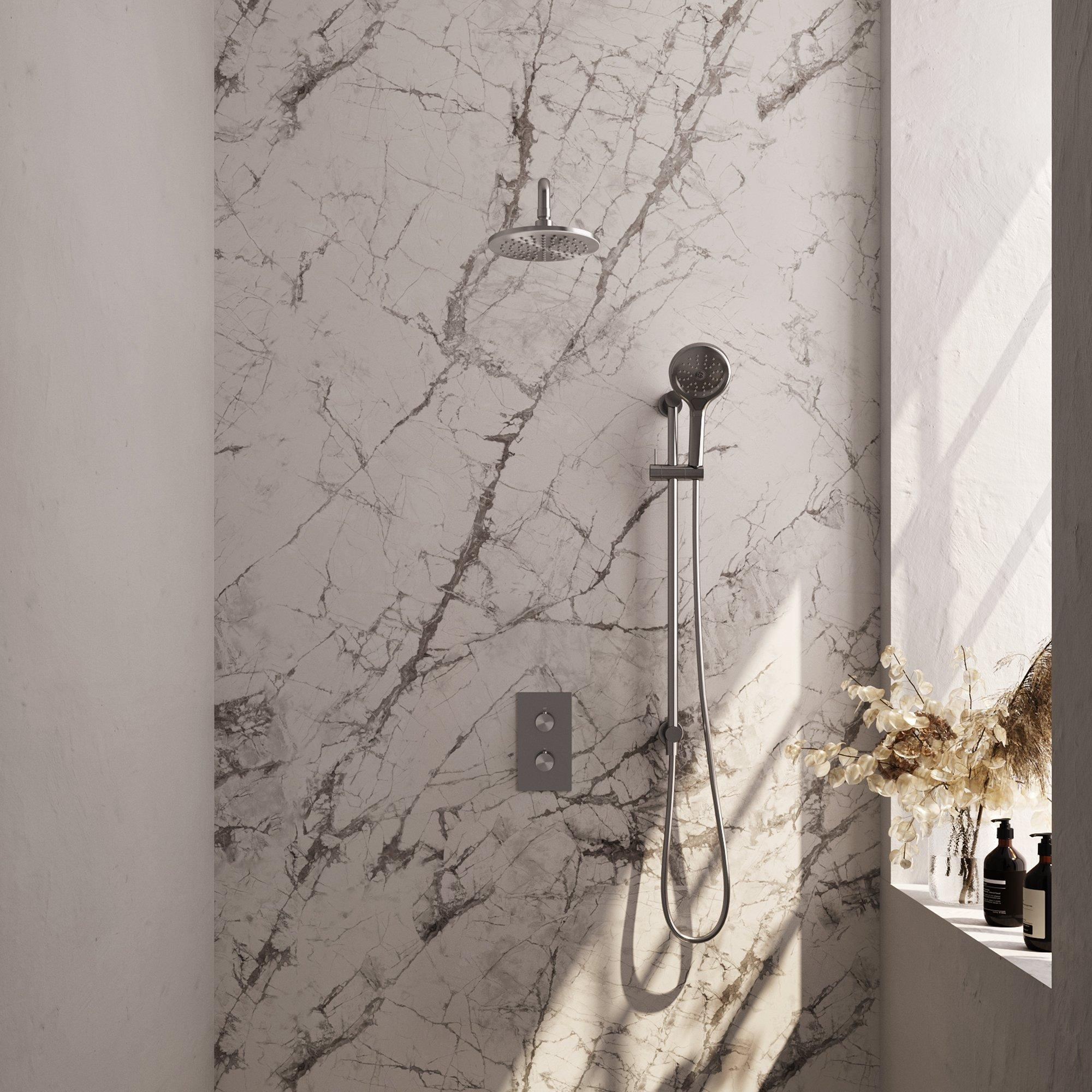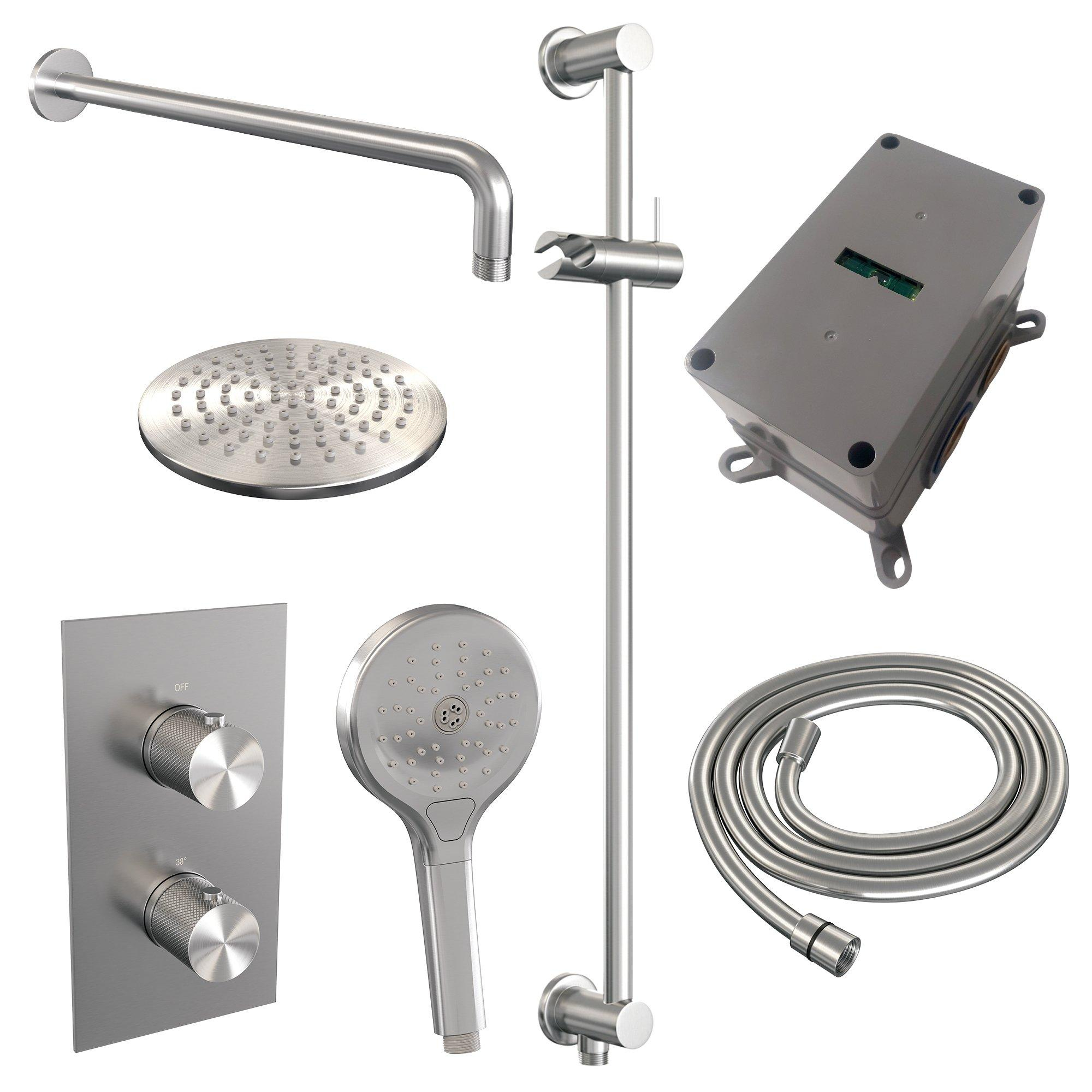Brauer Brushed Carving Regendoucheset inbouw - hoofddouche 20cm - Carving knop - handdouche rond 3 standen - glijstang - PVD - geborsteld RVS