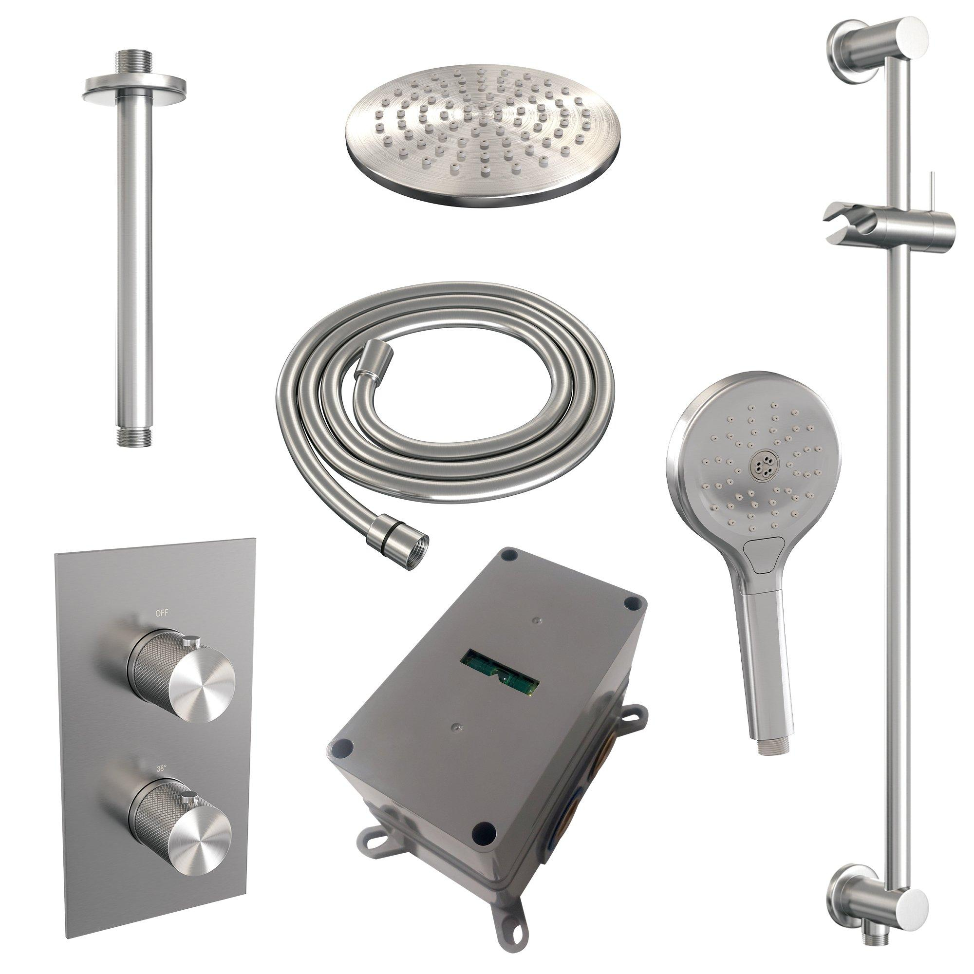 Brauer Brushed Carving Regendoucheset inbouw - hoofddouche 20cm - plafondarm 20cm - 2 functies - glijstang - inclusief inbouwdeel - handdouche Rond 3 standen - PVD - geborsteld RVS SW716112