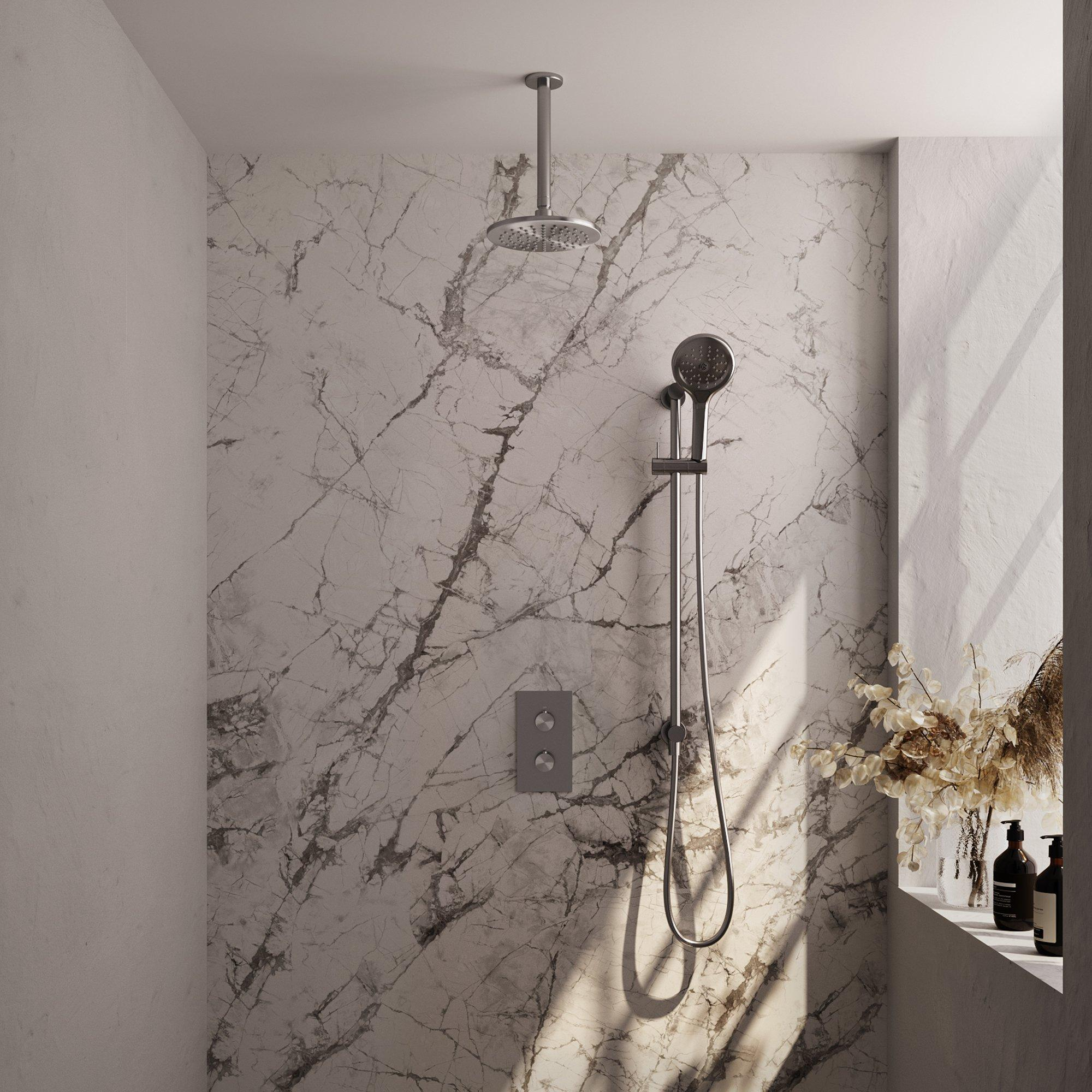 Brauer Brushed Carving Regendoucheset inbouw - hoofddouche 20cm - plafondarm 20cm - 2 functies - glijstang - inclusief inbouwdeel - handdouche Rond 3 standen - PVD - geborsteld RVS