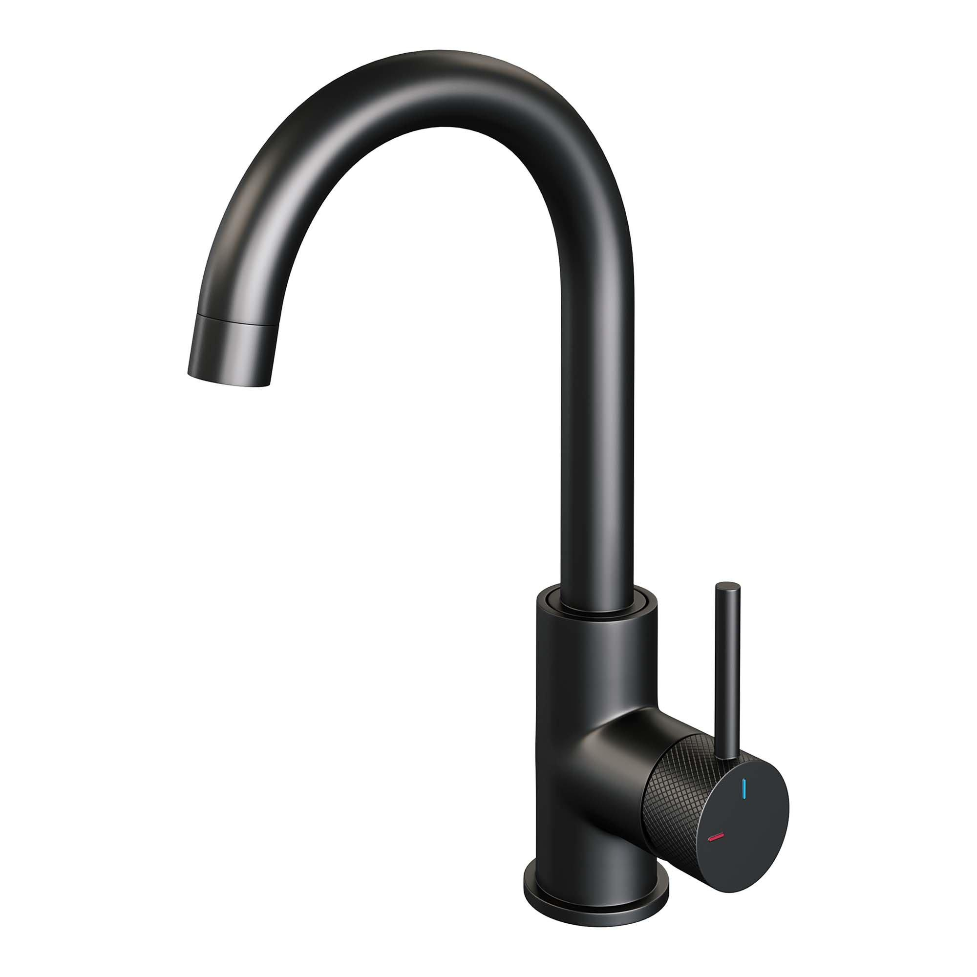 Deze wastafelmengkraan straalt een moderne uitstraling uit dankzij zijn strakke lijnen en eigentijdse ontwerp. Het mat zwarte afwerking voegt een vleugje elegantie toe aan de kraan, terwijl de draaibare functie zorgt voor extra gemak en flexibiliteit. De hendel is lang en smal, waardoor je de waterstroom en temperatuur nauwkeurig kunt regelen, terwijl de carving details een uniek en verfijnd tintje geven aan het geheel.