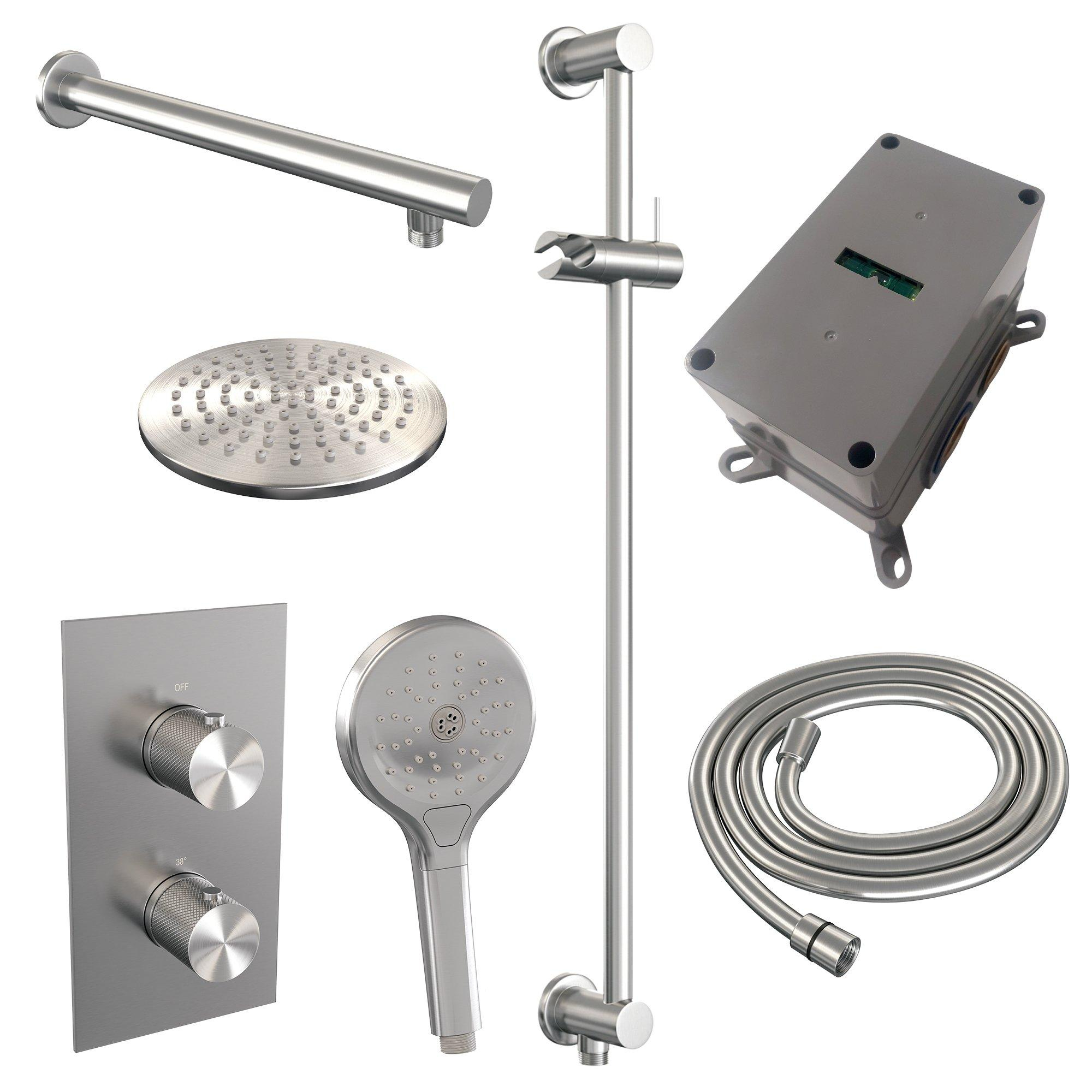 Brauer Brushed Carving Regendoucheset inbouw - hoofddouche 20cm - carving knop - handdouche Rond 3 standen - glijstang - PVD - geborsteld RVS