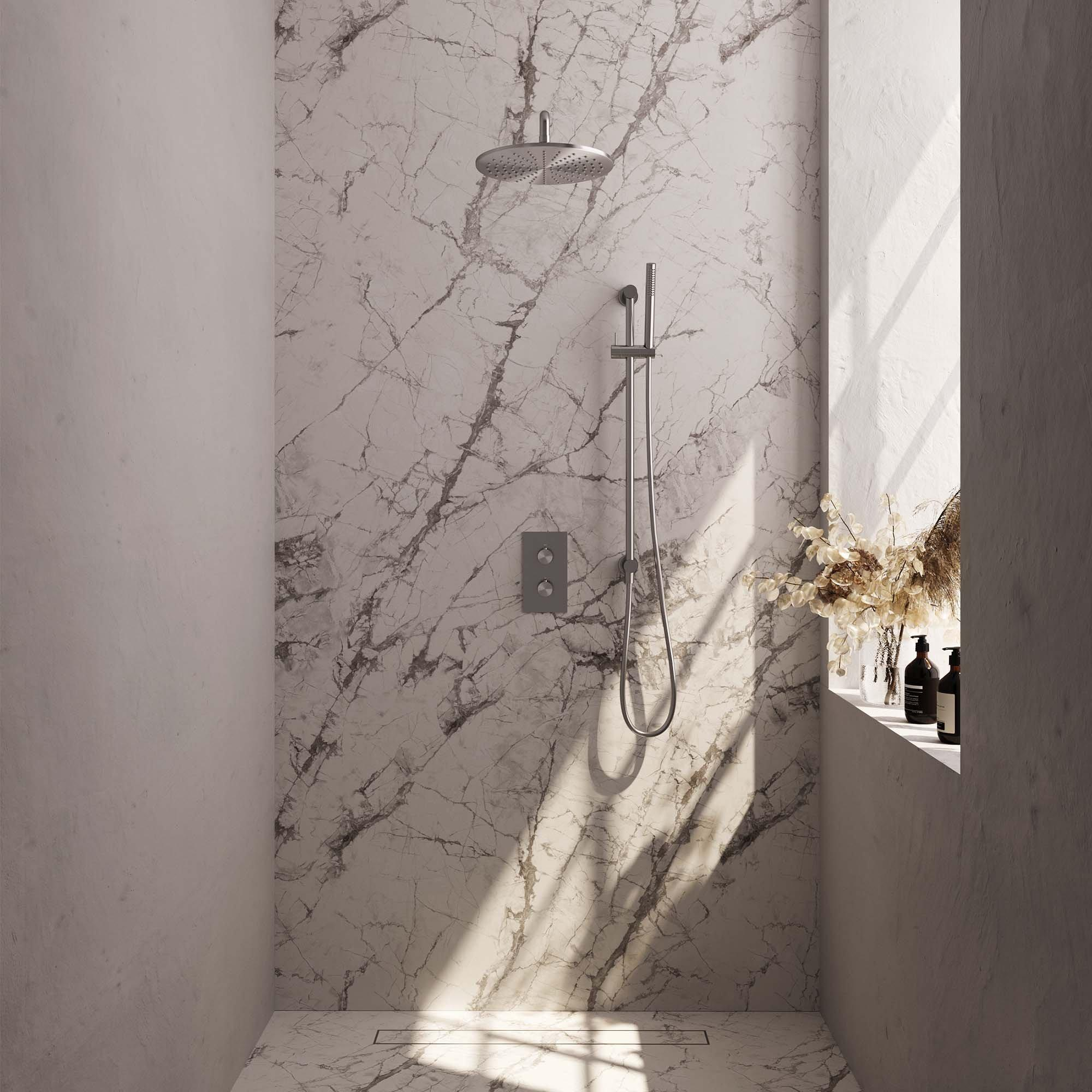 Brauer Brushed Carving Regendoucheset inbouw - hoofddouche 30cm - Carving knop - handdouche staaf 1 stand - glijstang - PVD - geborsteld RVS SW716127