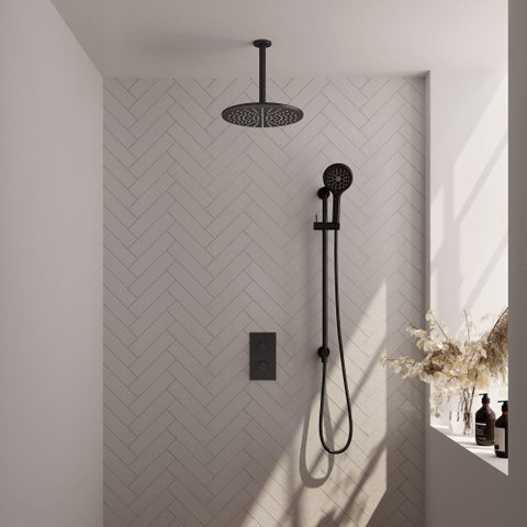 Brauer Black Carving Regendoucheset inbouw - hoofddouche 30 cm - 2 functies - glijstang - inclusief inbouwdeel - handdouche Rond 3 standen - mat zwart