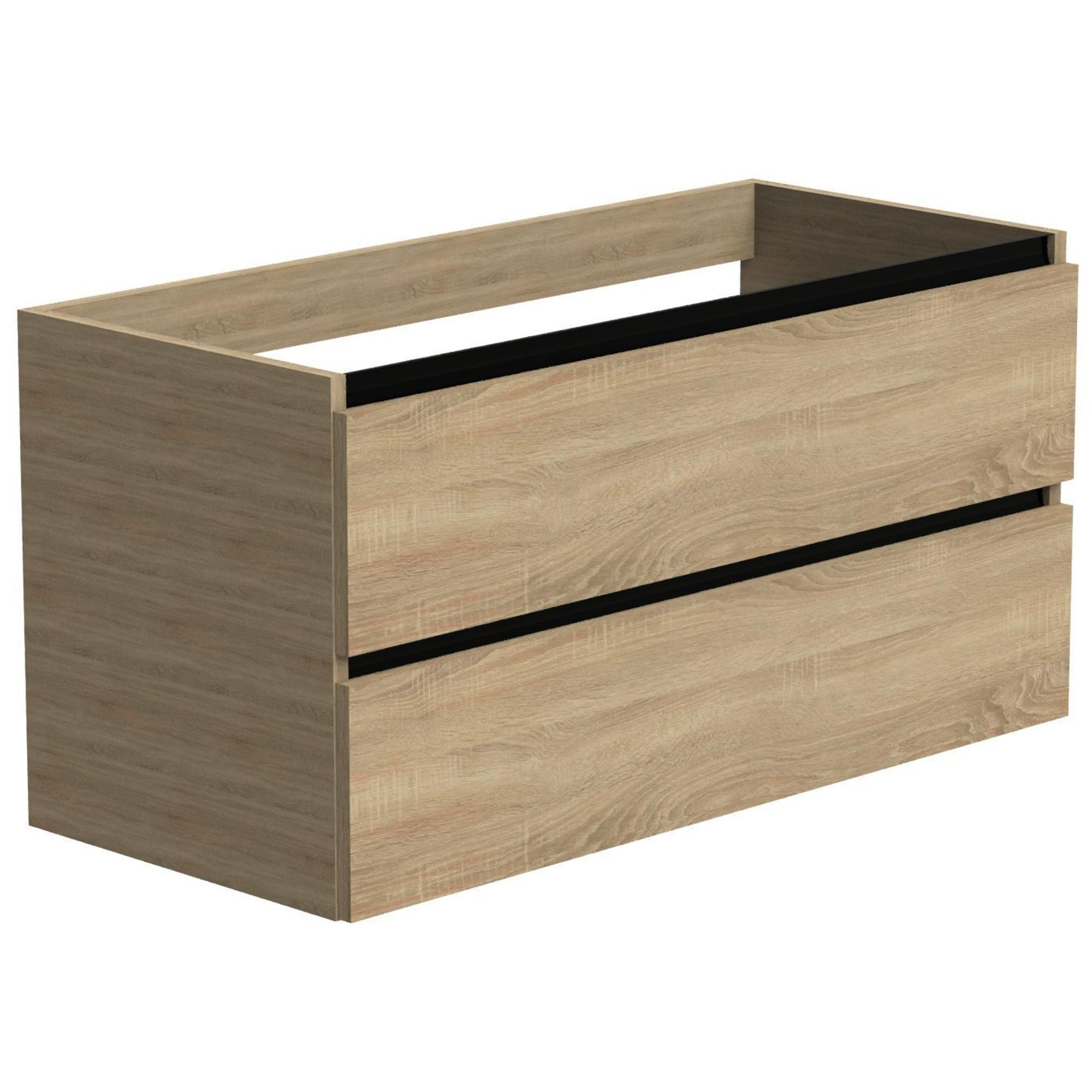Thebalux onderkast type1 100cm 2x lade greeploos 2x alu greeplijst mat zwart 1x uitsparing incl witte sifonset