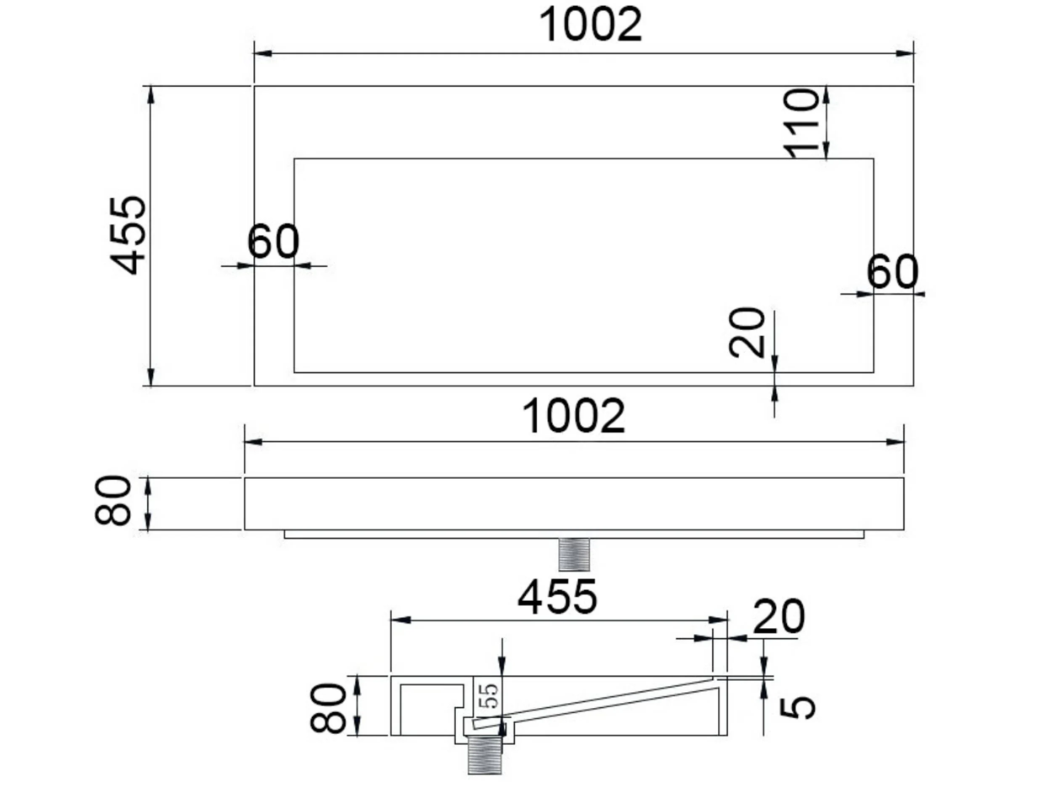 Thebalux wastafel glacier 100cm solid surface 1x kom zonder kraangat (dient zelf geboord te worden)