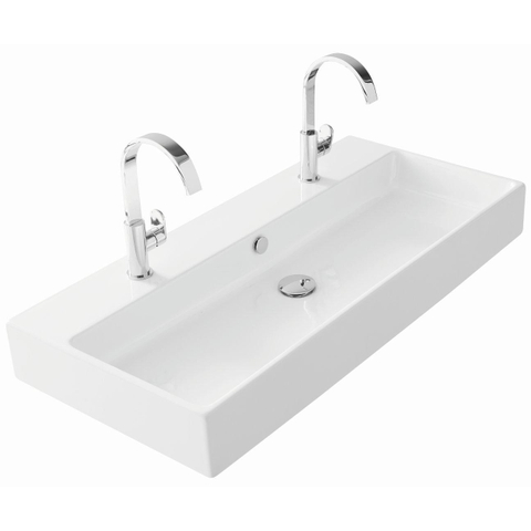 Thebalux wastafel quadro 100cm keramiek 1x kom 2x kraangat SW717320