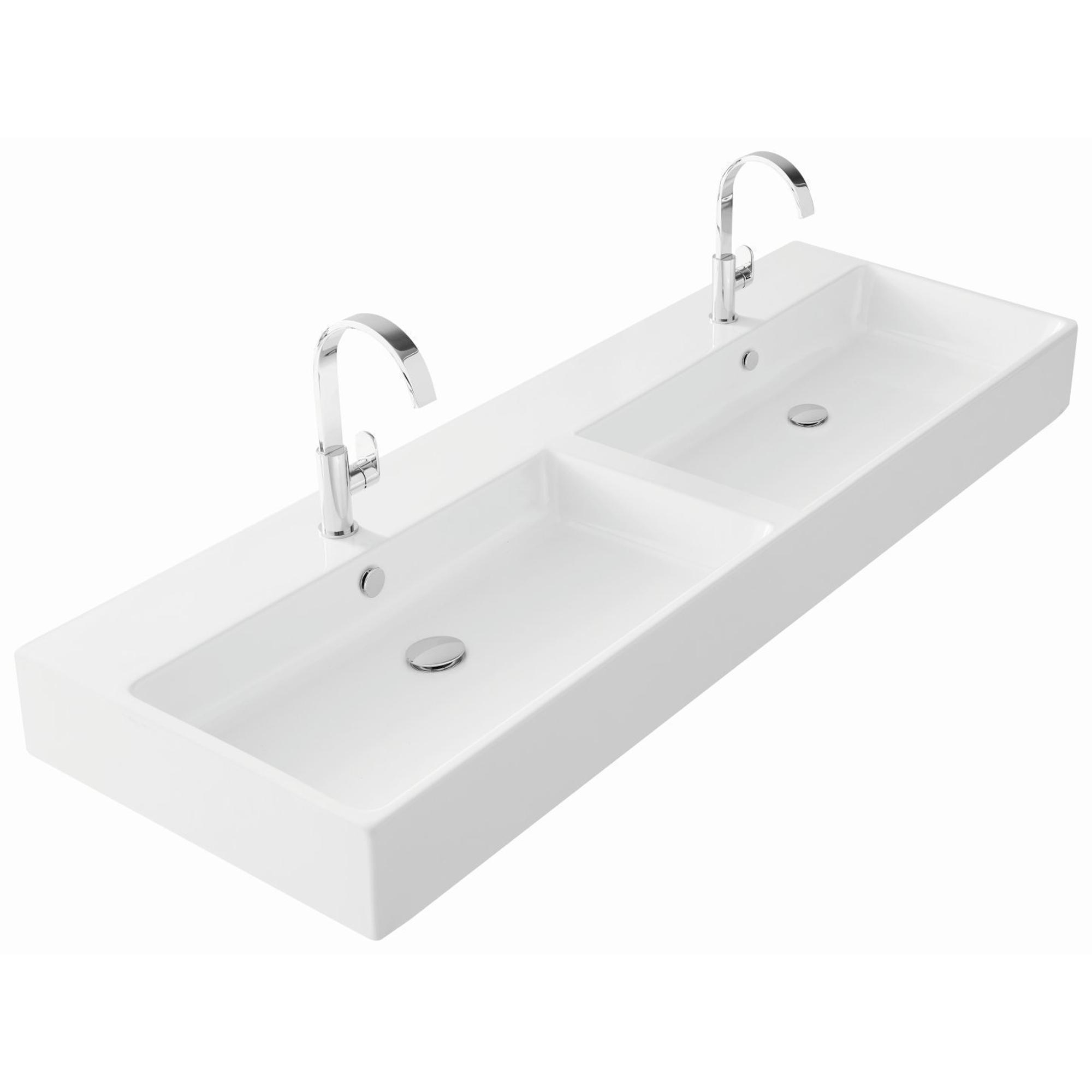 Thebalux wastafel quadro 140cm keramiek 2x kom 2x kraangat SW717330
