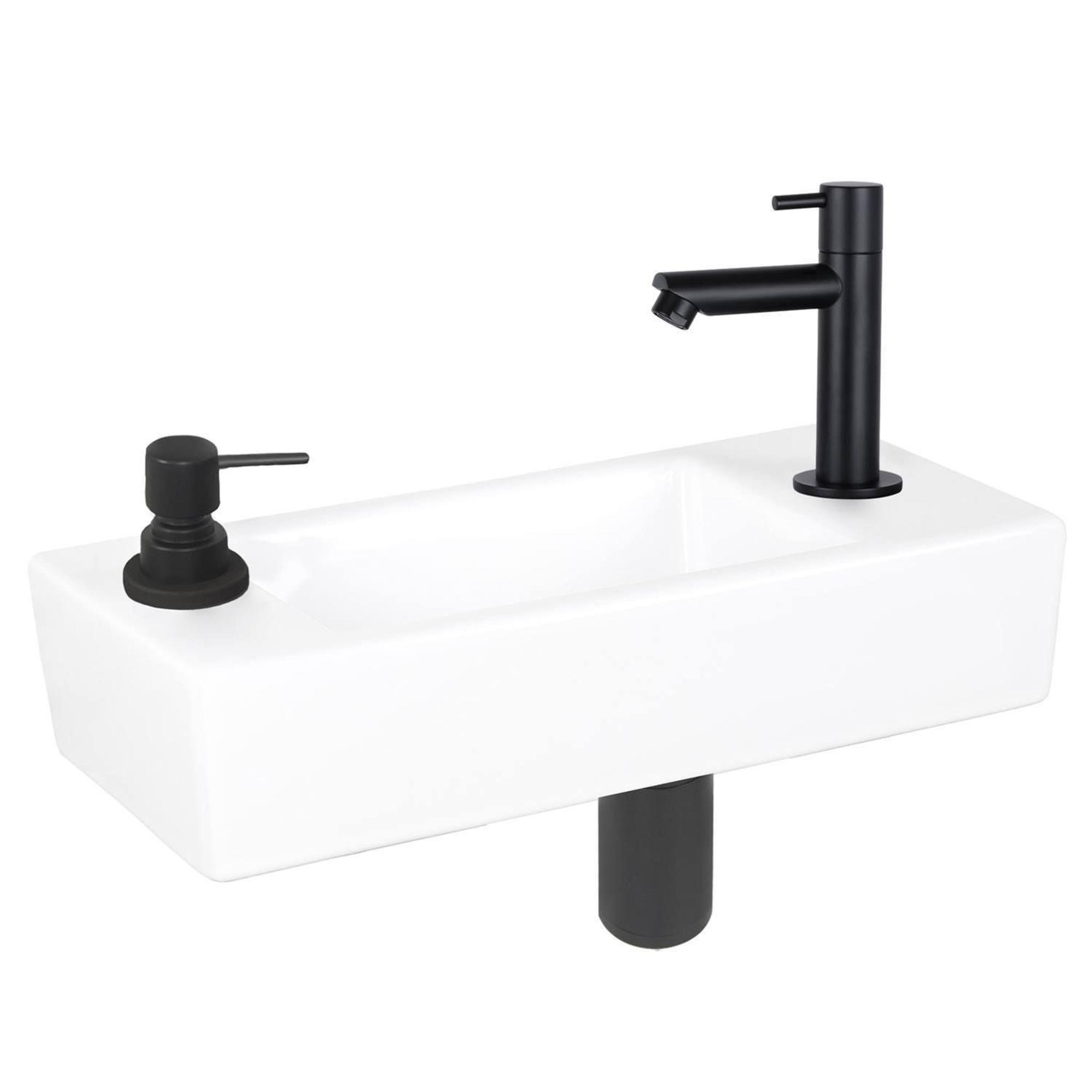Differnz Sapon fonteinset - 42.5x18.5x9cm - Rechthoek - 1 kraangat - Zwart mat - Keramiek Wit