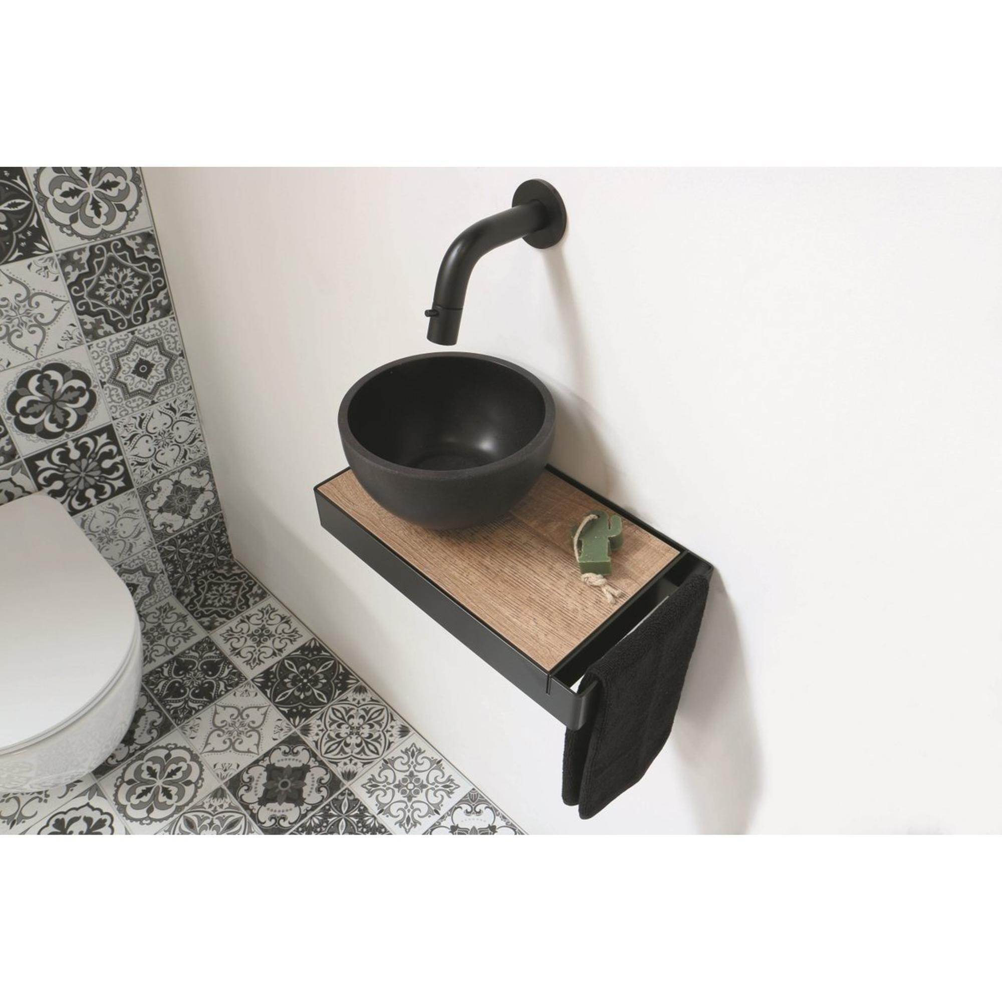 Ink Jazz XS toiletmeubel frame Zwart plateau Naturel Eiken waskom links Quartz 20cm zwart