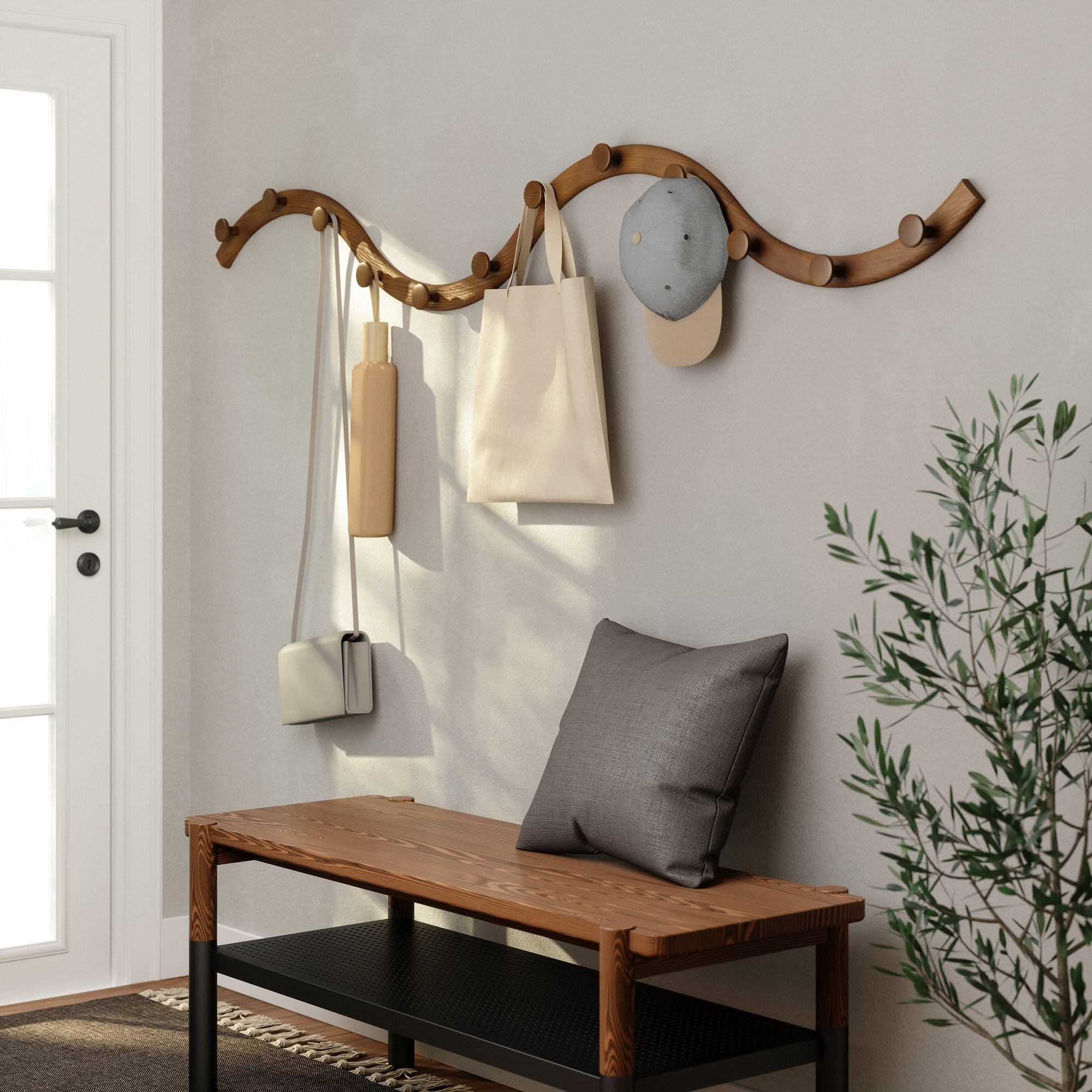 Umbra Slinka handdoekhaakjes 30x5x4cm met 12 haakjes set van 4 Essenhout Licht walnoot