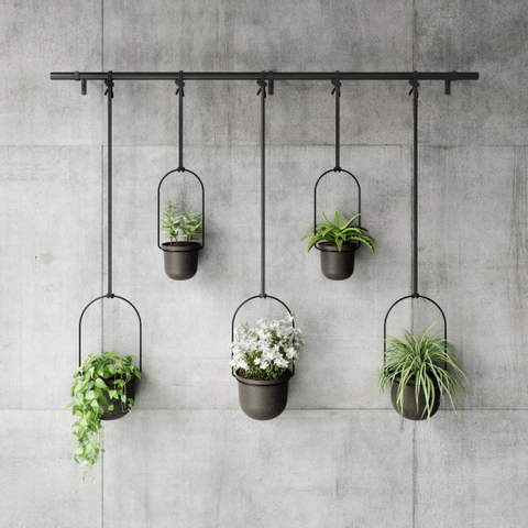 Met vijf bloempotten hangend aan een uitschuifbare metalen stang maakt triflora het gemakkelijk om planten water én voldoende licht te geven zonder ruimte op de vensterbank in beslag te nemen