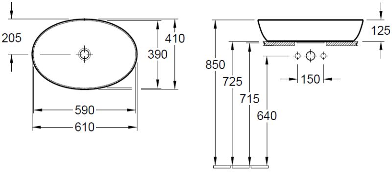 Villeroy & Boch Artis opzetwastafel ovaal 61x41cm zonder overloop ceramic+ wit TWEEDEKANS