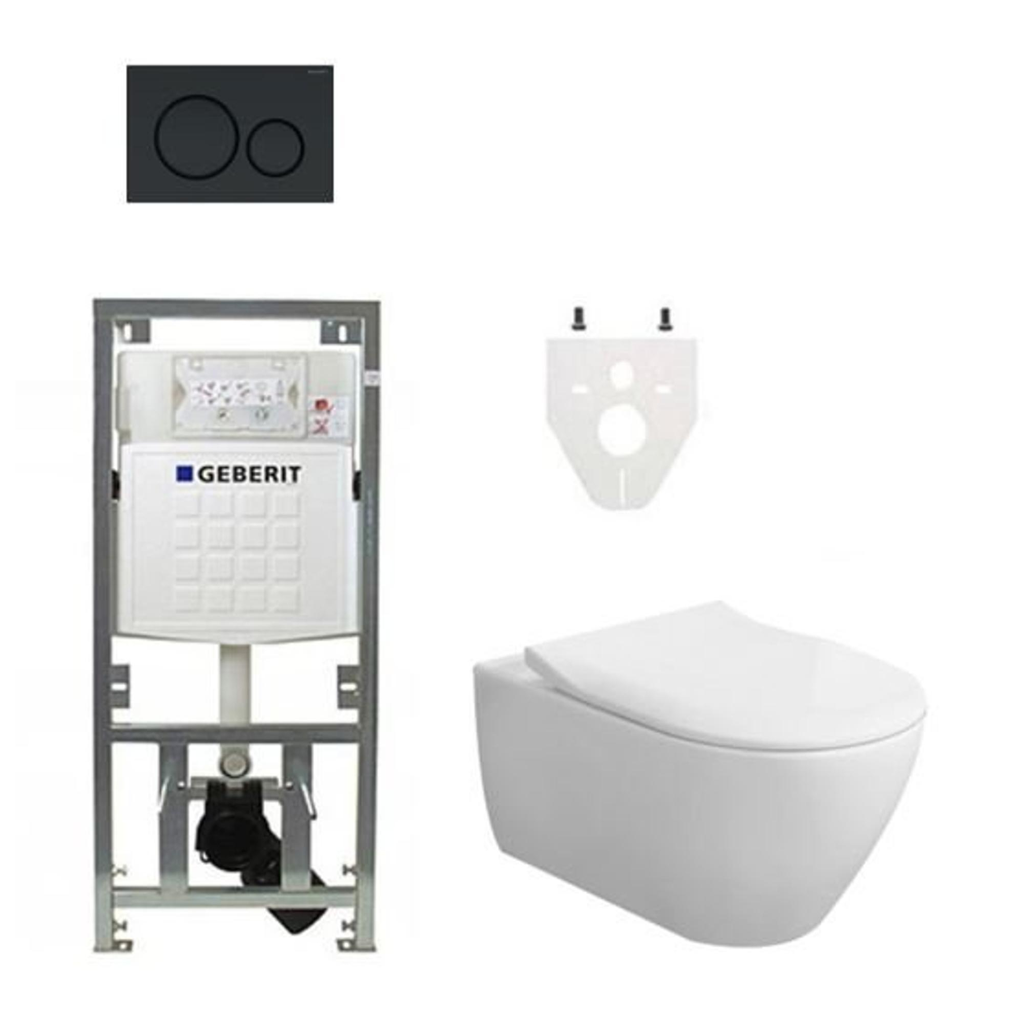 Villeroy & Boch Subway 2.0 DirectFlush CeramicPlus toiletset slimseat zitting met Geberit reservoir en bedieningsplaat mat zwart
