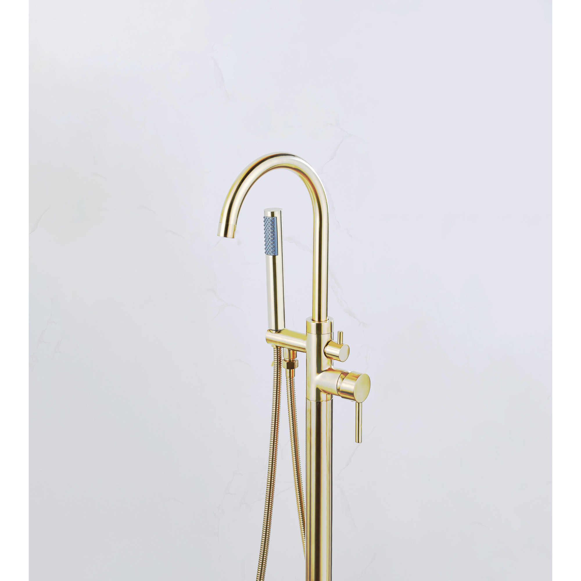 Fortifura Calvi vrijstaande badkraan 113cm met handdoucheset Geborsteld Messing PVD (Goud)
