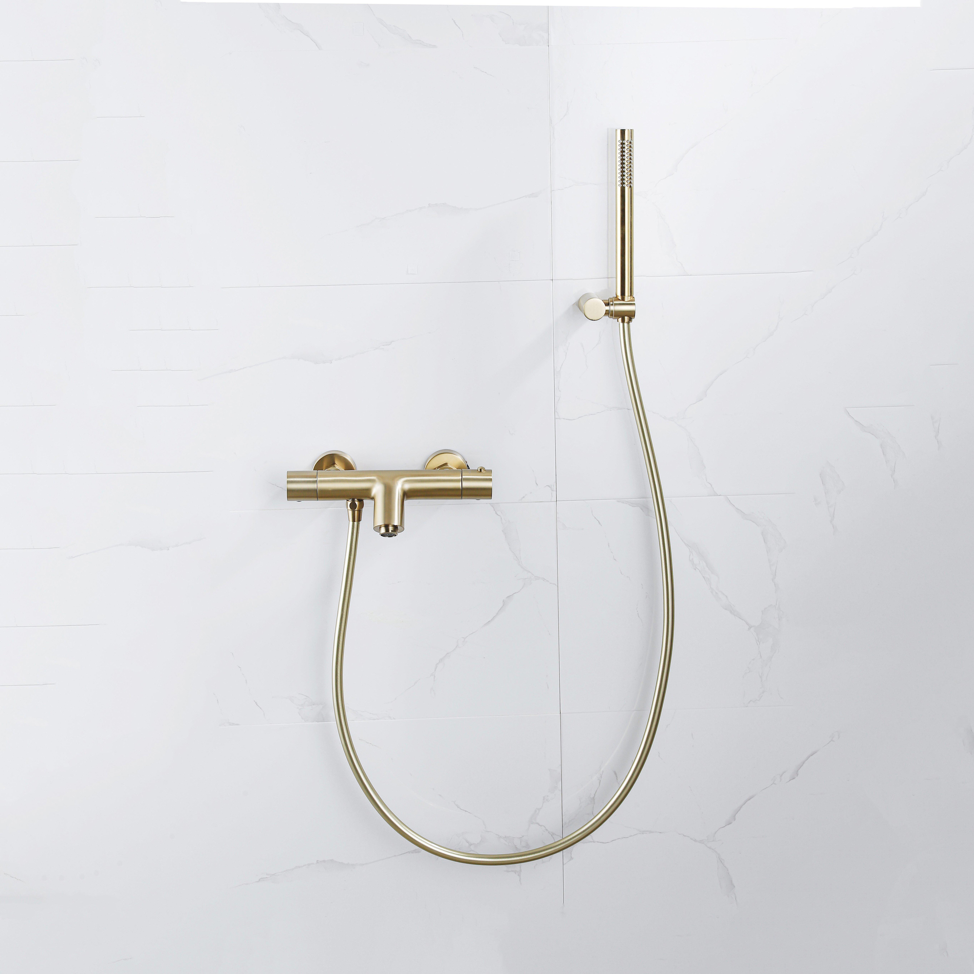 De Fortifura Calvi Staafhanddouche straalt een tijdloze elegantie uit dankzij zijn geborsteld messing PVD afwerking. Dit hoogwaardige materiaal zorgt niet alleen voor een luxe uitstraling, maar is ook bestand tegen corrosie en slijtage, waardoor de handdouche er jarenlang als nieuw uit blijft zien. De strakke lijnen en moderne vormgeving maken dit product een ware blikvanger in elke badkamer.