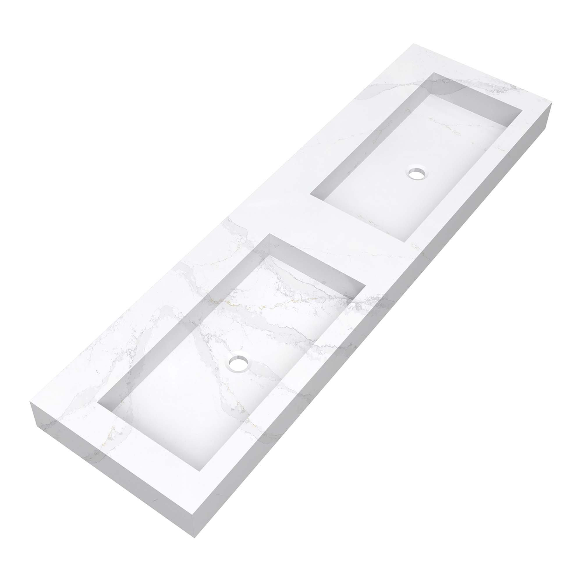 BRAUER Coral wastafel - 160x46x10cm - 2 wasbakken - 0 kraangaten - composiet - marmerlook - Calacatta Gold
