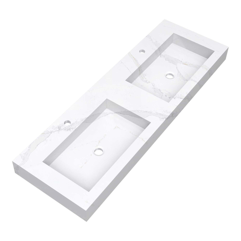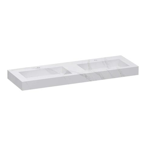 BRAUER Coral wastafel - 140x46x10cm - 2 wasbakken - 2 kraangaten - composiet - marmerlook - Calacatta Gold