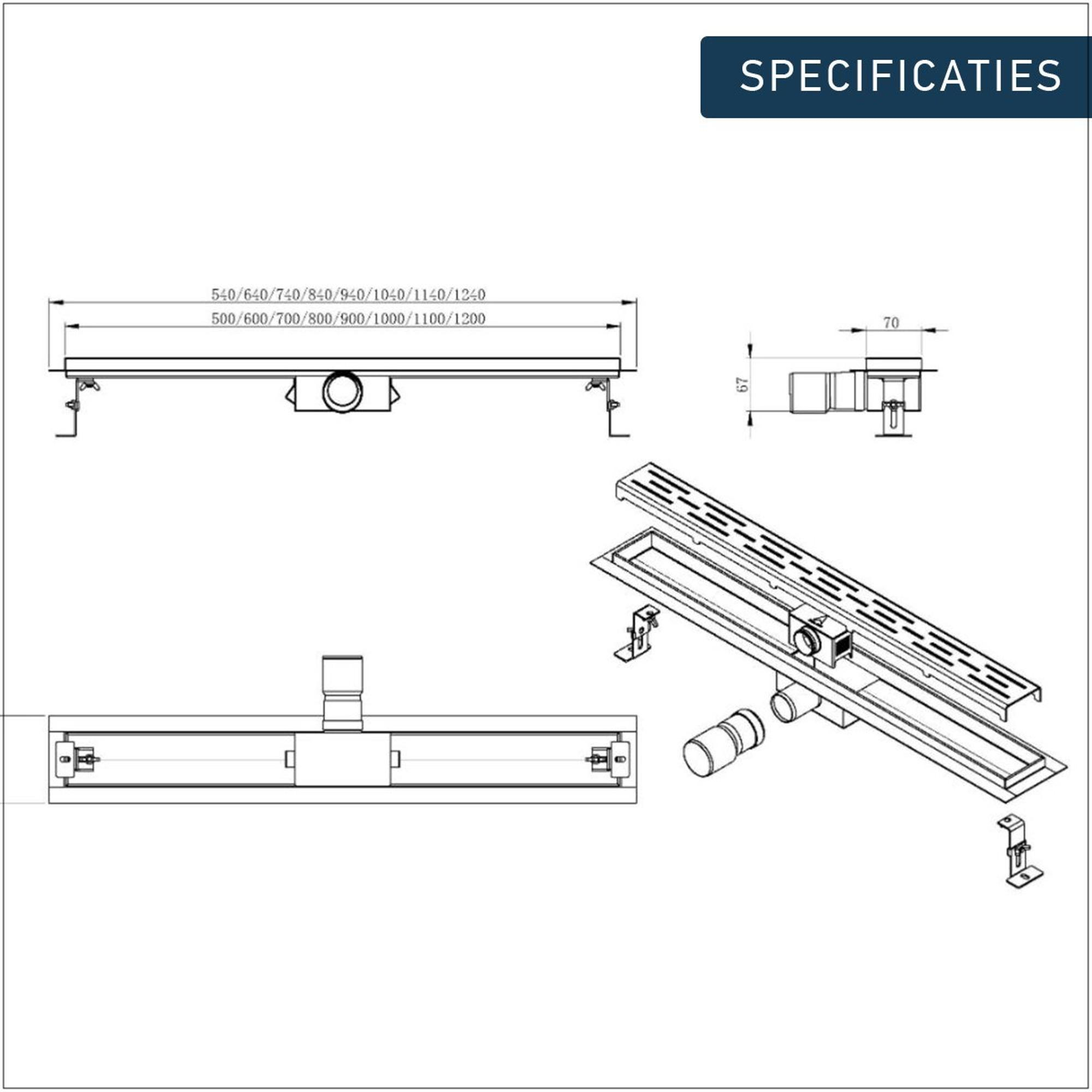 Deze douchegoot is vervaardigd uit hoogwaardig RVS, wat garant staat voor duurzaamheid en langdurige prestaties. Het materiaal is bestand tegen corrosie en slijtage, waardoor je jarenlang kunt genieten van een probleemloze afvoer in je douche.