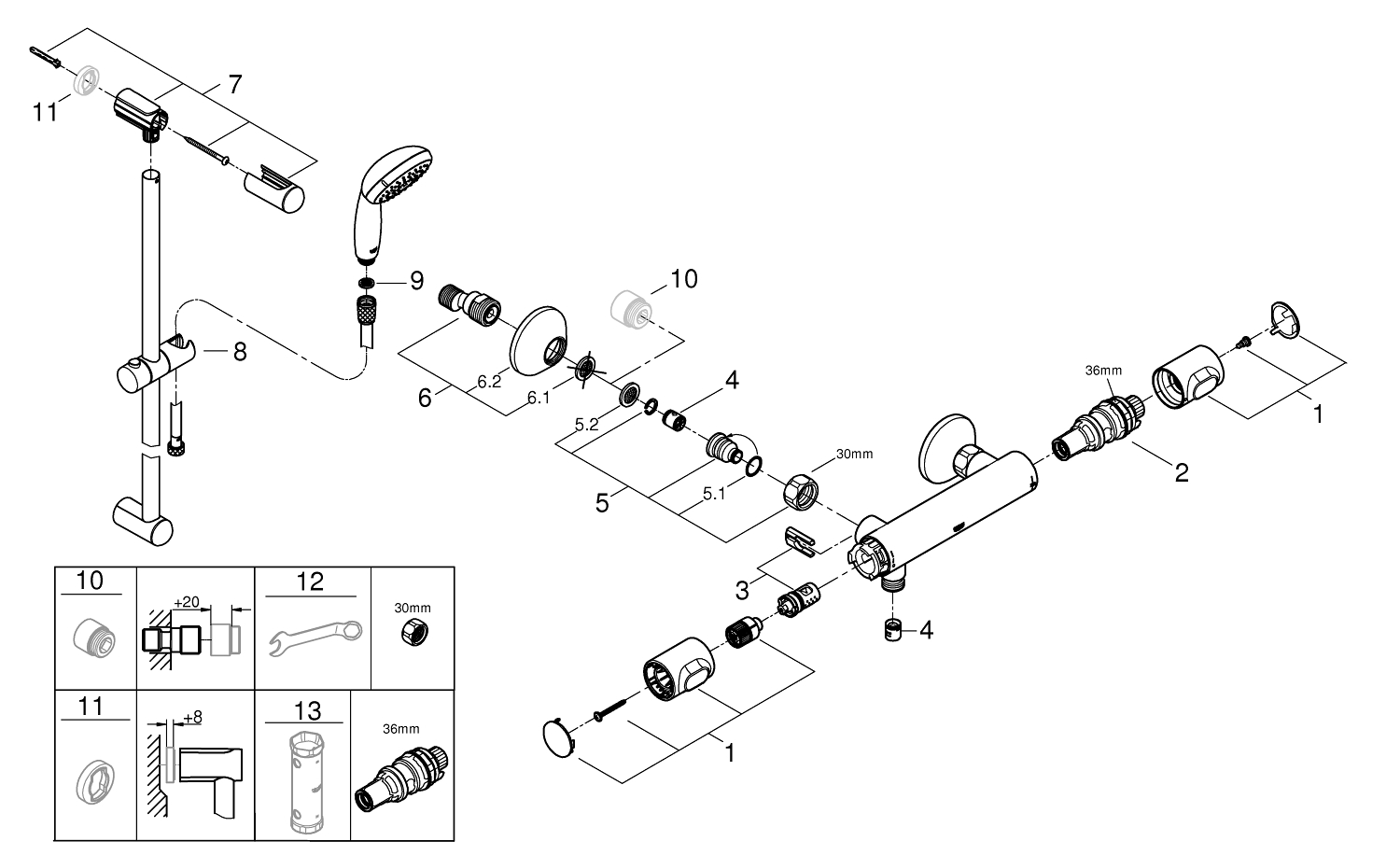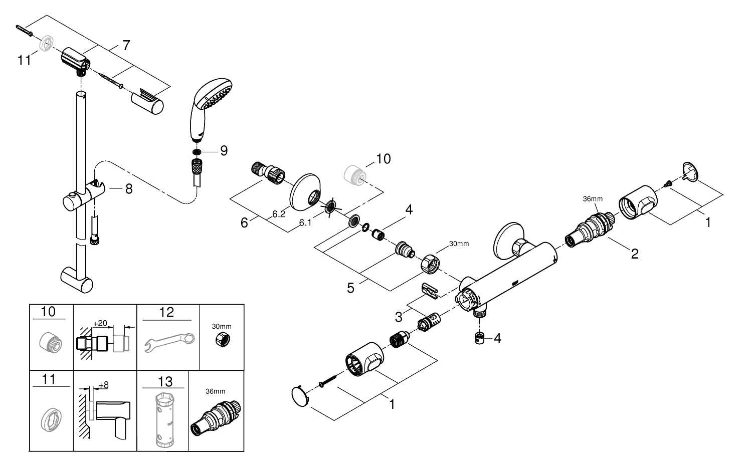geschikt om te schroeven (inclusief schroeven en pluggen) of lijmen (GROHE QuickGlue S 41 247 000 wordt apart verkocht - 2 x nodig)