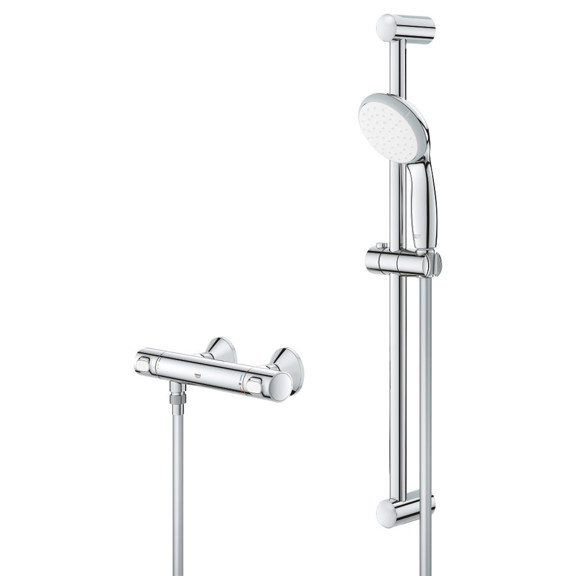 De GROHE Precision Flow thermostatische mengkraan met douchestangset – veilig en duurzaam, aantrekkelijk geprijsd.
