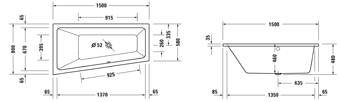Duravit No.1 inbouwbad 150x80/58cm acryl Wit SW723753