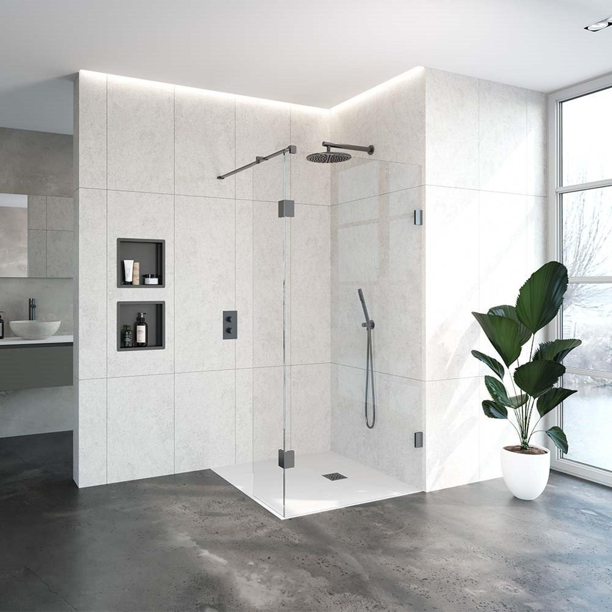 De Saniclass Create inloopdouche straalt stijl en klasse uit dankzij zijn gunmetal geborstelde afwerking. Het moderne design past perfect bij een eigentijdse badkamerinrichting en geeft een luxe uitstraling aan de ruimte. Het profielloze ontwerp zorgt voor een strakke en minimalistische look, waardoor de inloopdouche een eyecatcher wordt in de badkamer.