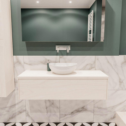 Dit prachtige hangende badkamermeubel van Mondiaz beschikt over een onderkast in de kleur underlayment met een wastafel van keramiek opbouwkom. De wastafel wordt geleverd met 0 kraangaten.