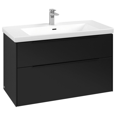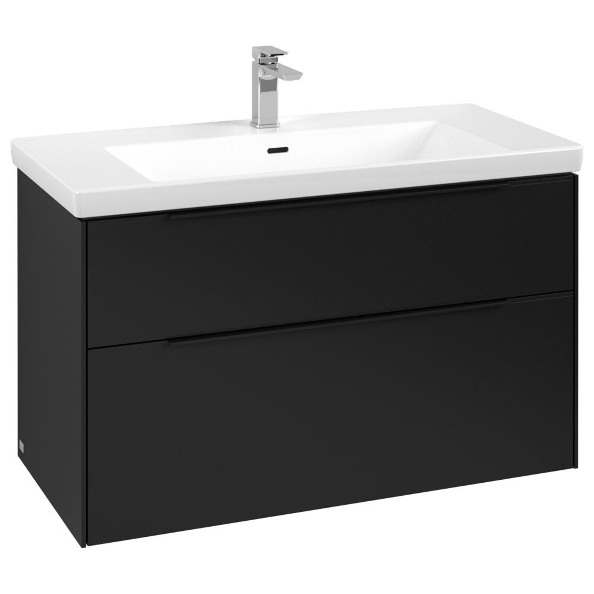 Villeroy & Boch Subway 3.0 wastafelonderkast 100x55x45cm met Volcano Black greep 2 softclose lades 1 sifonuitsparing spaanplaat volcano black SW730378