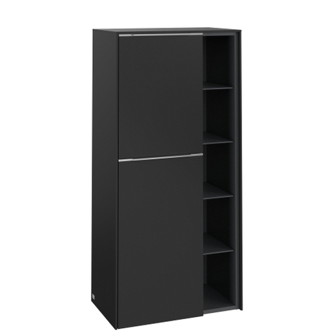 Villeroy & Boch Subway 3.0 Badkamerkast - 60x35x120cm - 2 linksdraaiende softclose deuren - 5 open vakken - aluminium glanzende greep - spaanplaat - volcano black