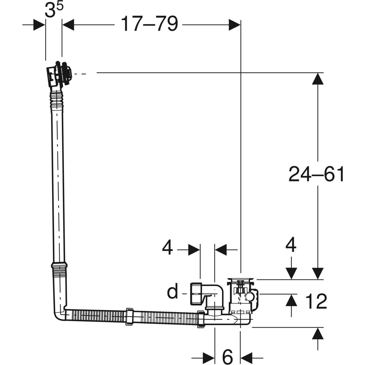 De Geberit badafvoer met draaibediening is een betrouwbare en efficiënte oplossing voor het afvoeren van water in je bad. Met een afvoeraansluiting van D52 en een lengte van 79 cm is deze badafvoercombinatie geschikt voor diverse badtypes. Dankzij het tegenstroomprincipe wordt een optimale waterafvoer gegarandeerd, zelfs bij hogere waterstanden.