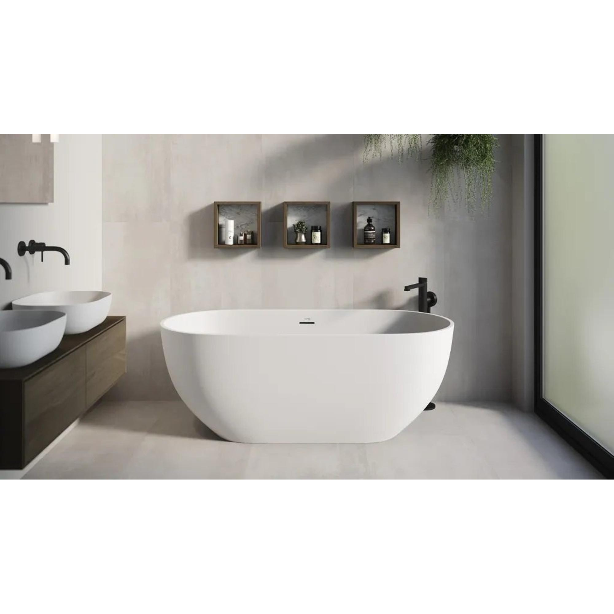 Het Looox Easy vrijstaand ligbad combineert functionaliteit met stijl. De strakke lijnen en moderne vormgeving creëren een eigentijdse uitstraling die perfect past in diverse badkamerstijlen. Het matte witte mineraal marmer geeft een verfijnde touch aan de ruimte en laat het ligbad opvallen als een designelement. Laat jouw badkamer schitteren met dit stijlvolle ligbad.